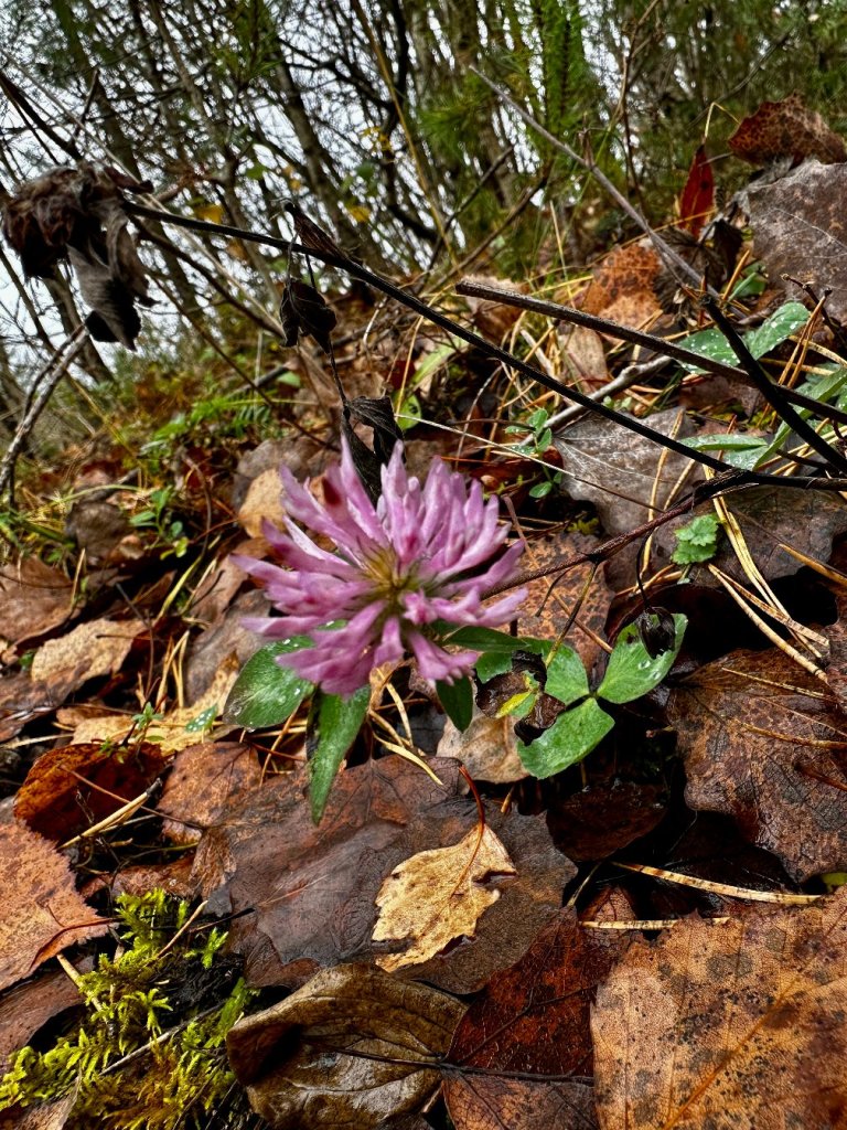 Na krzewach wciąż wiszą owoce: czerwone, czarne i niebieskie, a wśród nich dzika róża, tarnina i ligustr pospolity i oczywiście jabłka. Deszcz zostawił na owocach szkliste krople, które błyszcząc przyciągają nasze spojrzenia.