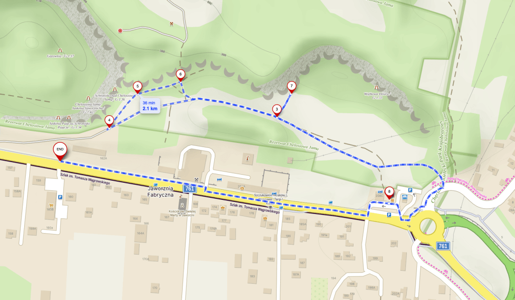 - Aplikacja nie pozwoliła wytyczyć nam trasy w sposób który my nią przeszliśmy. Zamiast tego przedstawia ona alternatywną trasę, a opis jak przejść „na skróty” znajduje się poniżej.