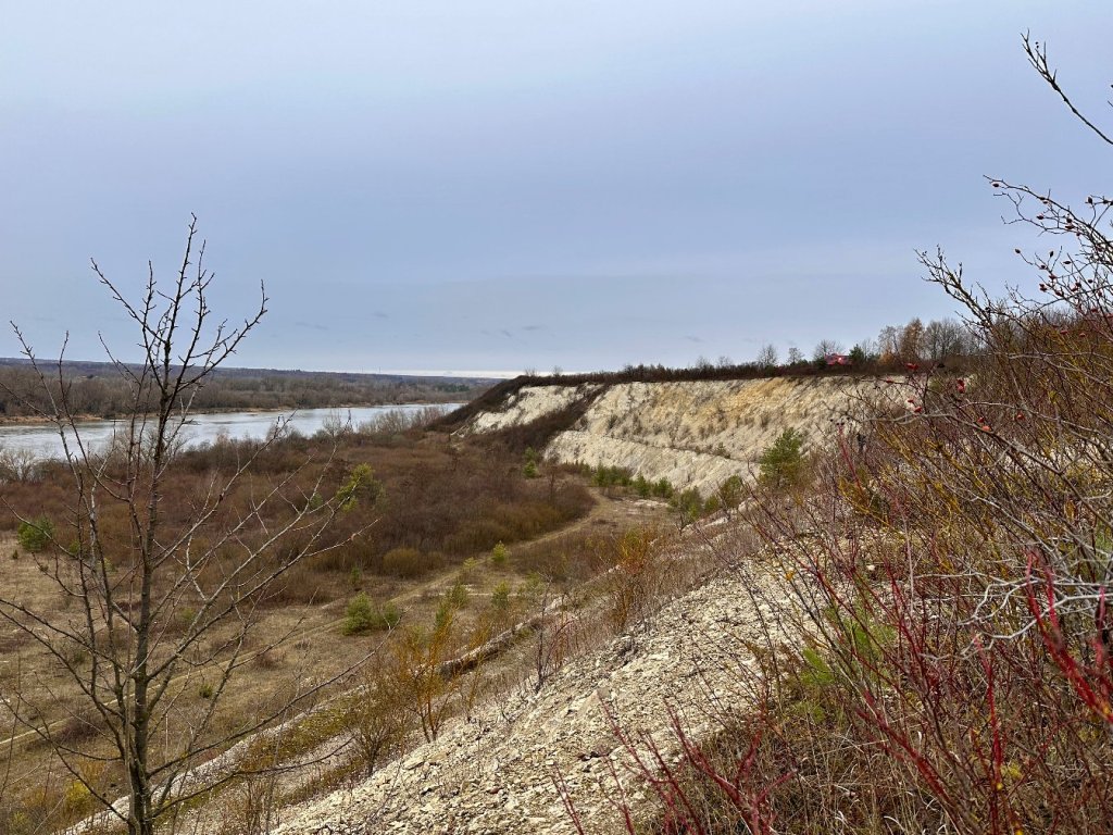 Wokół rosną kępki szarych traw i puchate o tej porze roku nawłocie, gotowe rozsypać się przy najmniejszym podmuchu. Od strony rzeki teren porastają karłowate sosny.