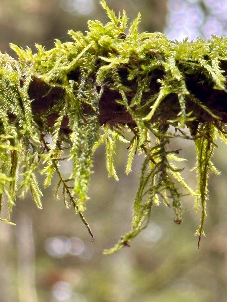 Idąc dalej dostrzegamy gałęzie, z których zwisają pasma mchu. Czujemy się jak w lesie deszczowym, tylko w polskiej wersji.