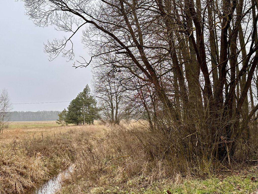 Niestety wychodzimy w prześwit otwartego terenu. Na jego widok… zawracamy. Nie mamy ochoty na szarą łąkę i białą mgłę.