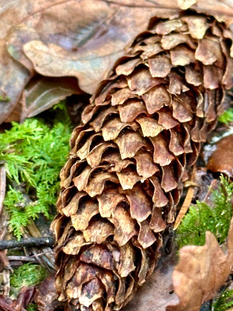 Wracając rozglądamy się uważniej, na szyszki, wciąż zielone rośliny wśród mchów oraz grzyby, których jak się okazuje, rośnie całkiem sporo.