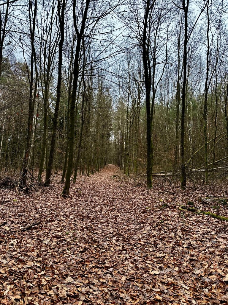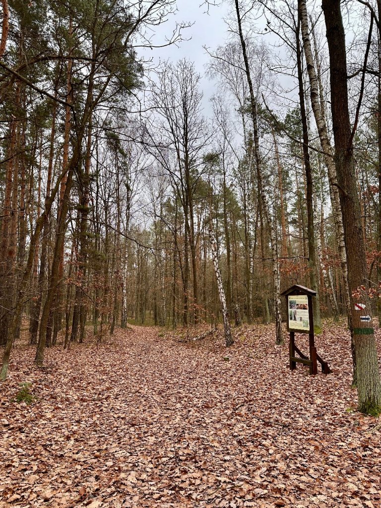 Niedziela była nieco mniej pochmurna niż wczorajszy dzień, ale wciąż ponura i typowa dla początku grudnia. Na Lubelszczyźnie cały ranek padało, a w mazowieckim było zupełnie sucho. Po wczorajszym spacerze w rezerwat Królewskie Źródła postanowiliśmy zajrzeć na ścieżkę w Rezerwacie Krępiec, licząc na mniej uczęszczaną, bardziej wyciszoną trasę. I faktycznie – las prowadził nas dziś niemal samotnie.