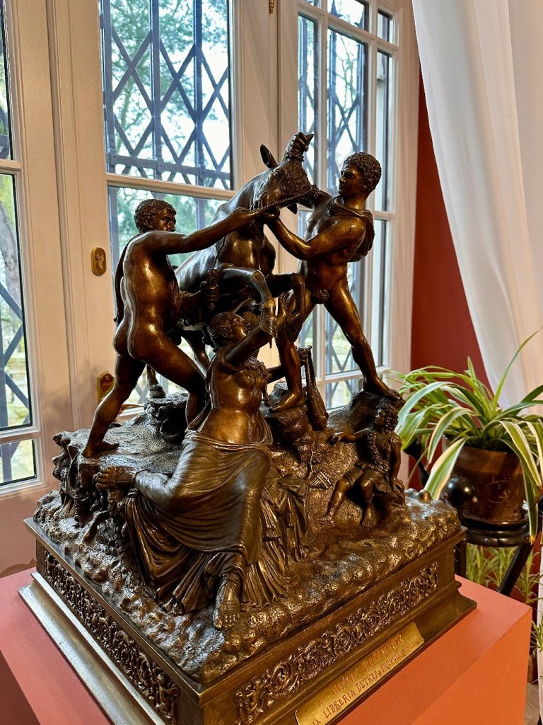Jest skrzynia podarowana Sienkiewiczowi oraz brązowa rzeźba z motywem ujarzmiania byka.