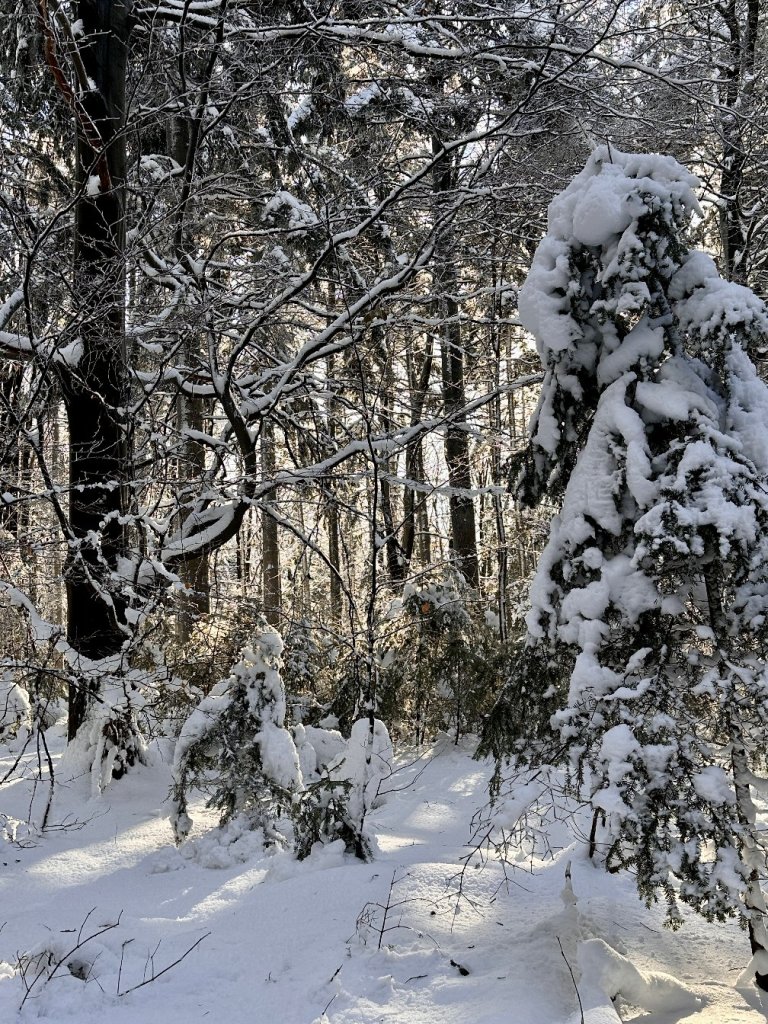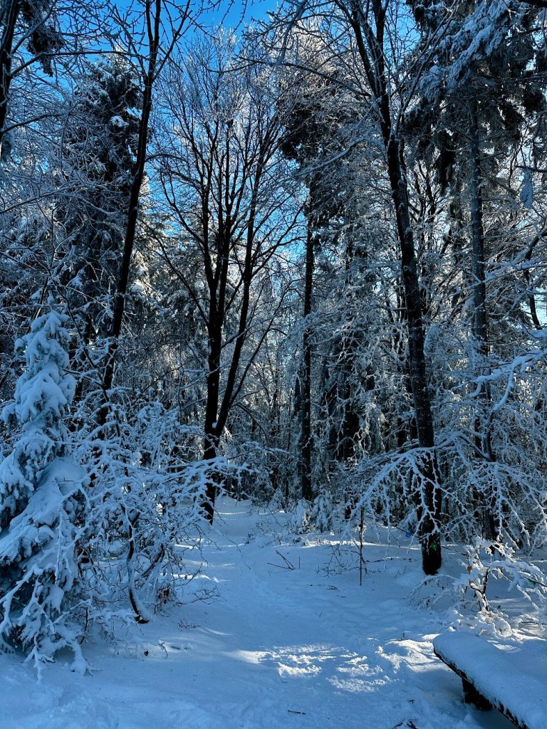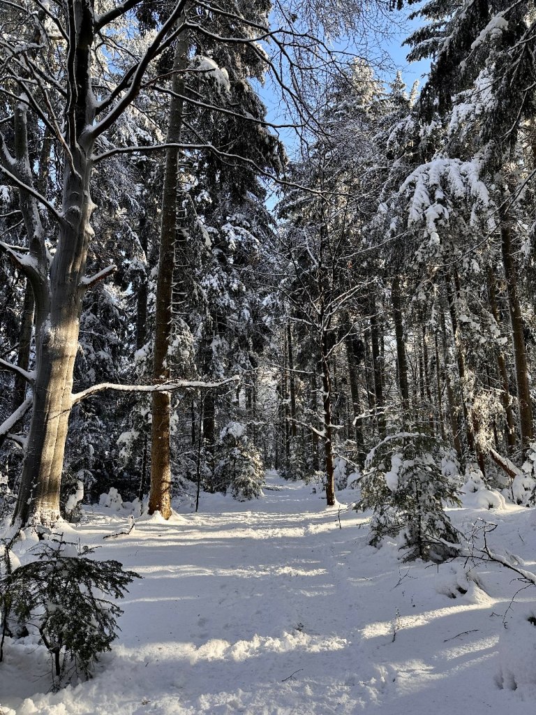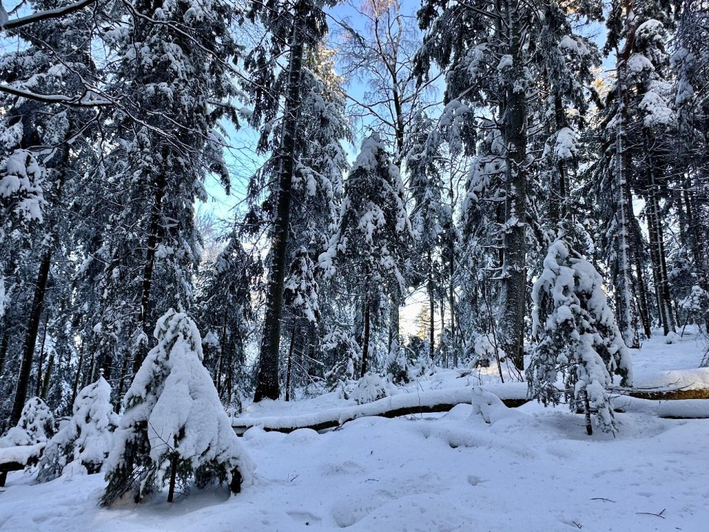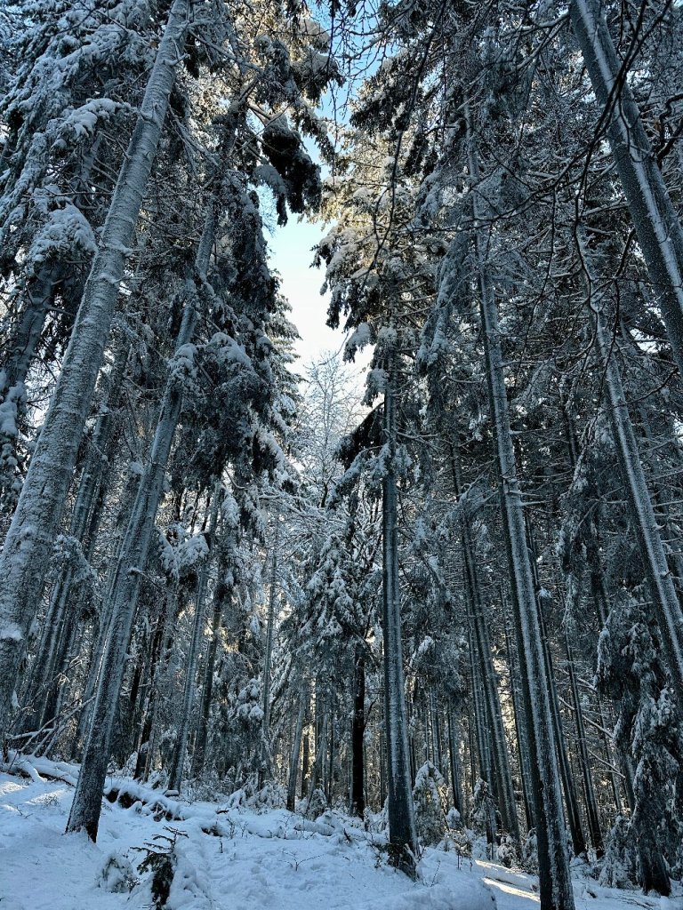 Las wygląda jak z zimowej baśni. Gałęzie uginają się pod ciężarem śniegu, drobny szron oblepia pędy, zamarznięte krople wiszą na końcówkach gałązek. Wszystko skrzy się w świetle. Słychać ptaki, ten dźwięk zimą zawsze robi na nas ogromne wrażenie.