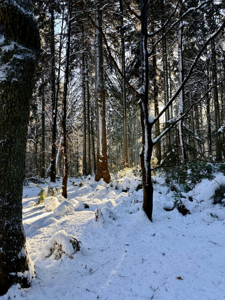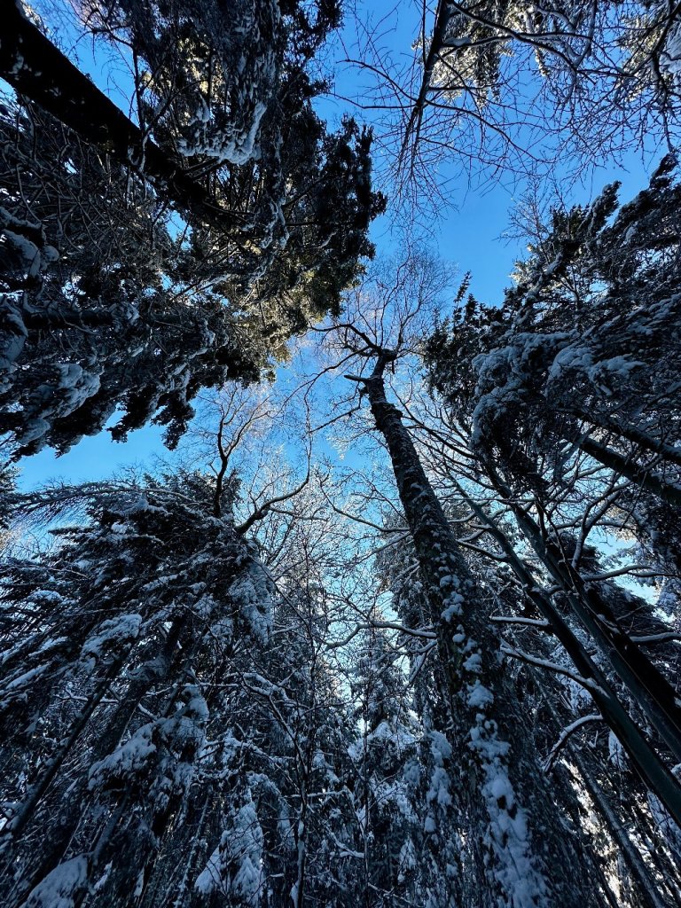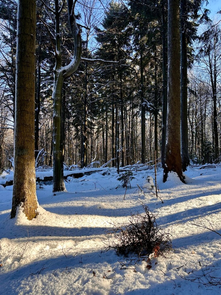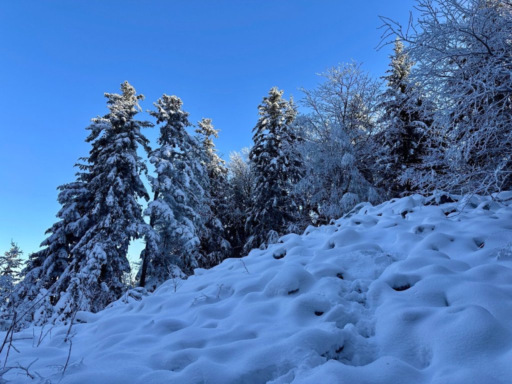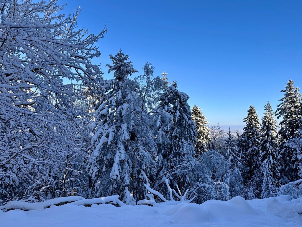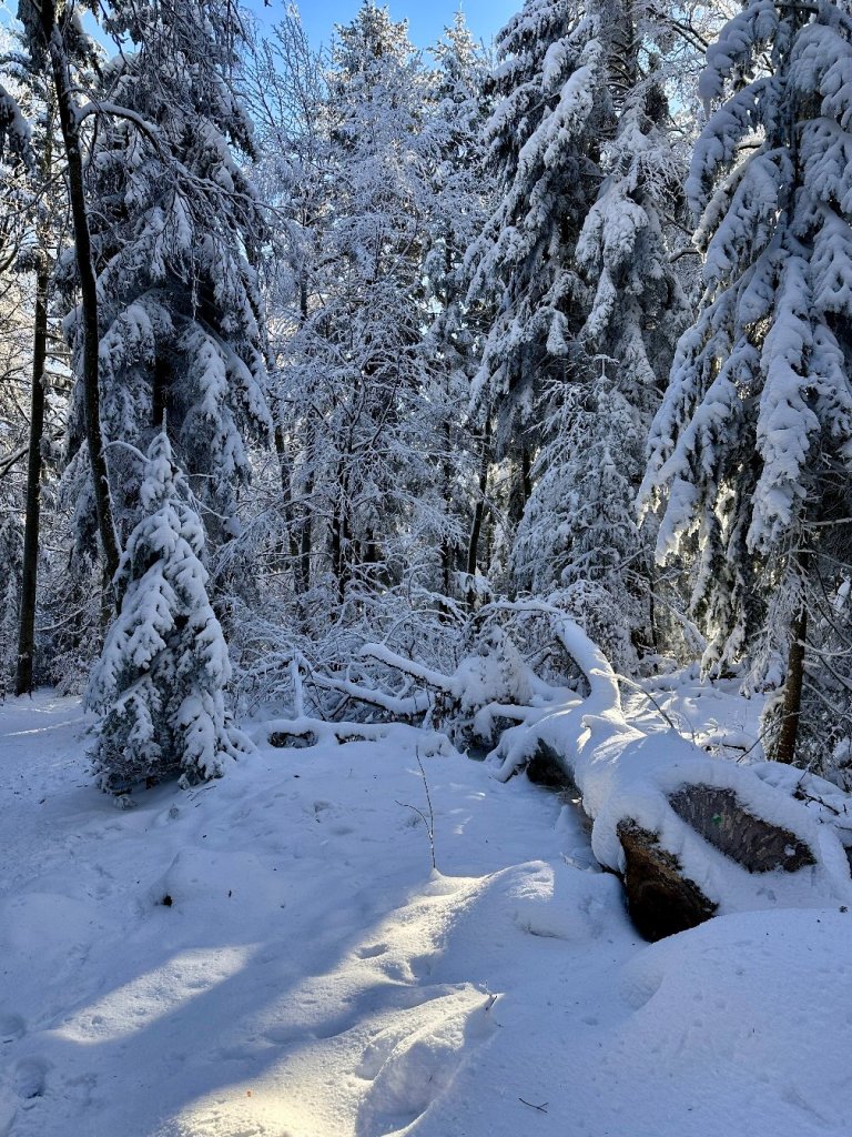 Las wygląda jak z zimowej baśni. Gałęzie uginają się pod ciężarem śniegu, drobny szron oblepia pędy, zamarznięte krople wiszą na końcówkach gałązek. Wszystko skrzy się w świetle. Słychać ptaki, ten dźwięk zimą zawsze robi na nas ogromne wrażenie.