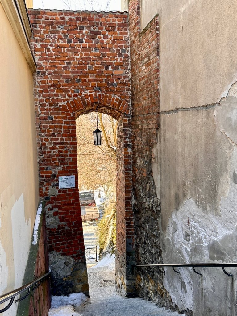 To była nasza pierwsza wizyta w Sandomierzu. Za nami było już zwiedzanie Muzeum Zamkowe w Sandomierzu i Brama Opatowska w Sandomierzu, a dzień choć pełen planów od początku wystawiał nas na próbę. Odczuwalna temperatura spadała poniżej –10°C, śnieg był udeptany i bardzo śliski na chodnikach. Mimo takich warunków turystów w Sandomierzu nie brakowało, więc postanowiliśmy zajrzeć także pod ziemię.