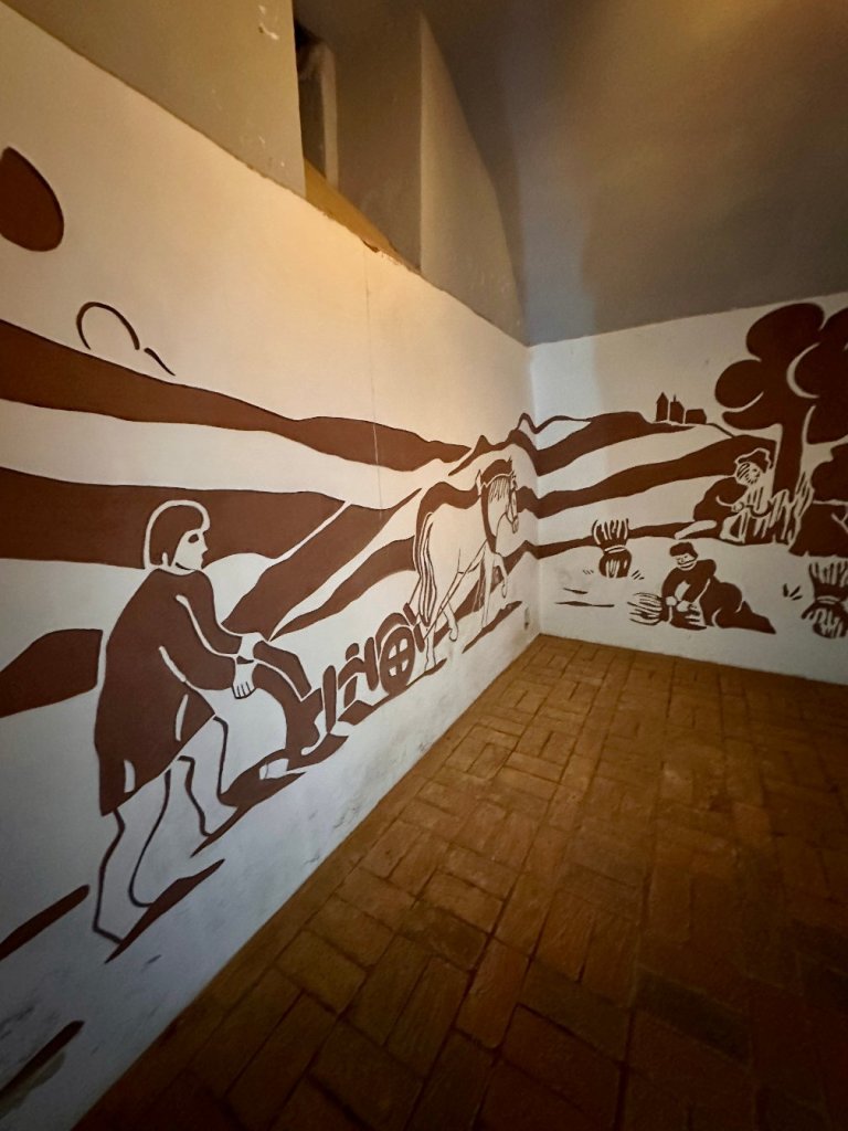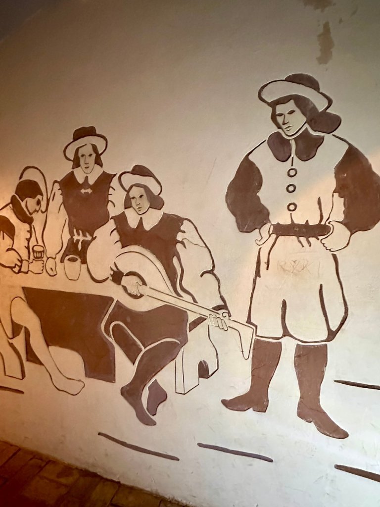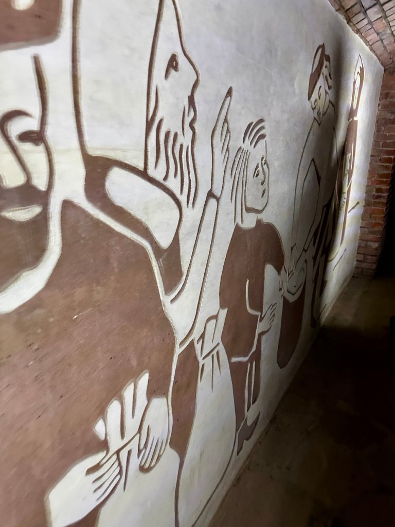 Jest tłoczno, malowidła trudno obejrzeć. Schodzimy znów w dół, mijając kolejne dekoracje.