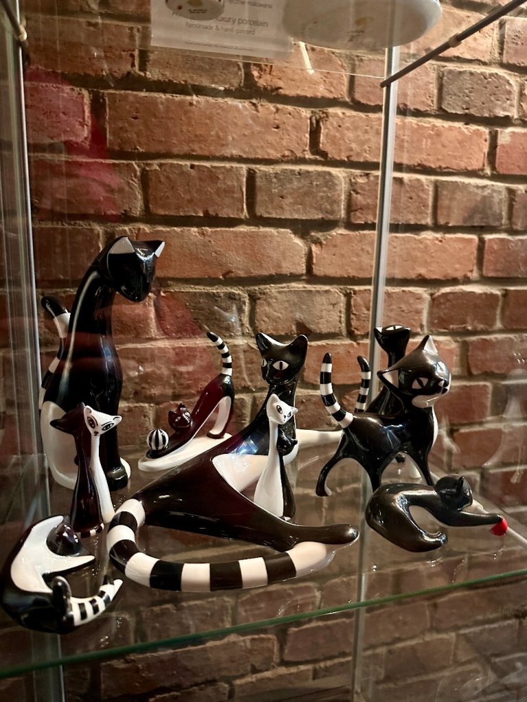Figurki są nowoczesne i kolorowe, kotki, pieski, postacie, trochę filiżanek, zupełnie nie w naszym stylu. Mijamy kolejną dekorację przedstawiającą bitwę z Tatarami.