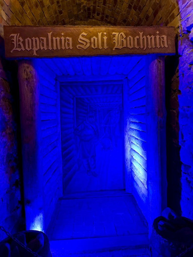 Szybko przechodzimy obok niebiesko podświetlonej wnęki z przedstawieniem kopalni soli. Nie zatrzymujemy się, niestety brak jest wyjaśnienia, zostaje niedosyt.