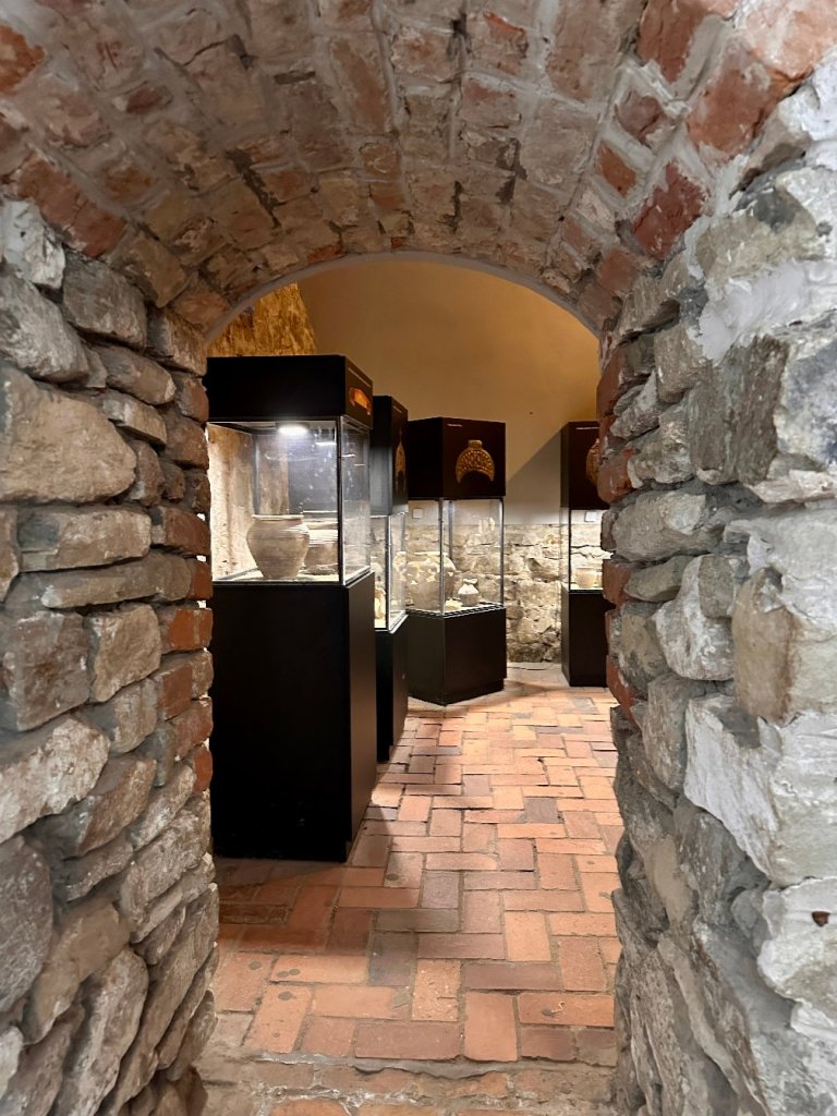 Widzimy kolejne eksponaty, talerze, monety, ale światło jest słabe, a przewodnik nie przystaje. Zdjęcia odpadają.
