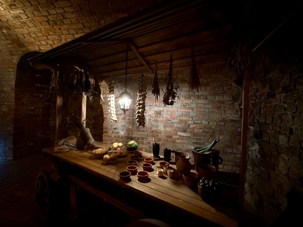 Na chwilę się zagapiamy i gubimy grupę. W jednym z korytarzy mijamy kolejną dekorację z inscenizacją targu.