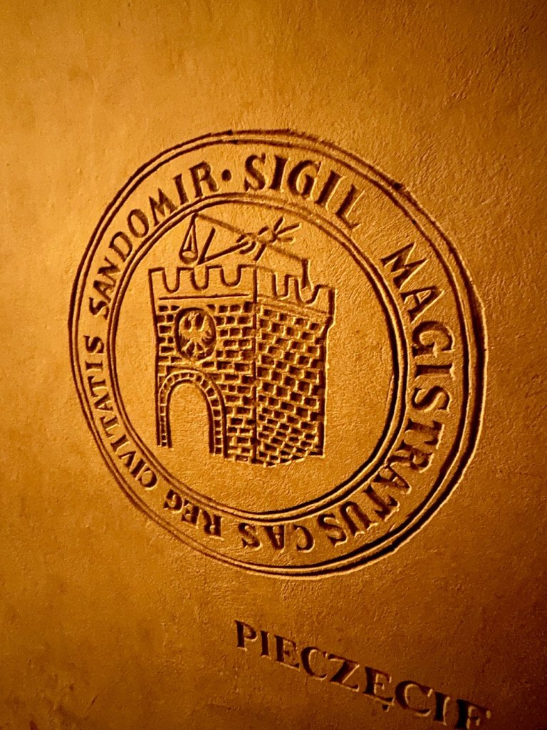 Na ścianach widzimy miejskie pieczęcie, ale nie są szerzej omawiane. Po chwili wychodzimy na zewnątrz, tuż obok ratusza.