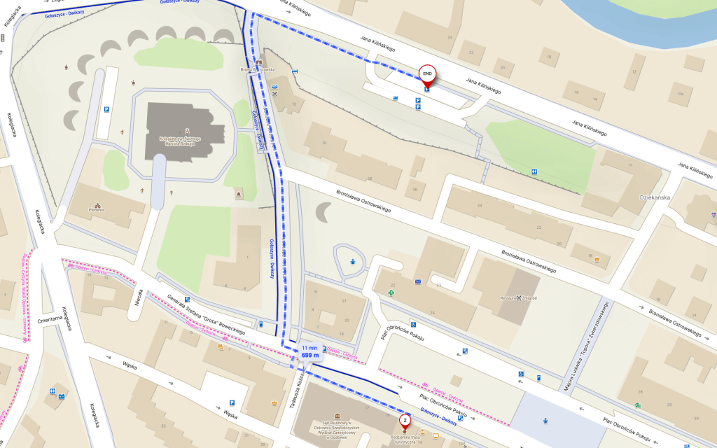 Trasa: Parking – Z parkingu kierujemy się w stronę Bramy Warszawskiej przez którą przechodzimy – Idziemy prosto i na drugim skrzyżowaniu skręcamy w lewo – Wejście do podziemnej trasy znajduje się po przeciwnej stronie rynku- Zwiedzanie odbywa się wyłącznie w obecności przewodnika – Trasa kończy się w tym samym miejscu – Powrót do samochodu ta samą trasą – Parking