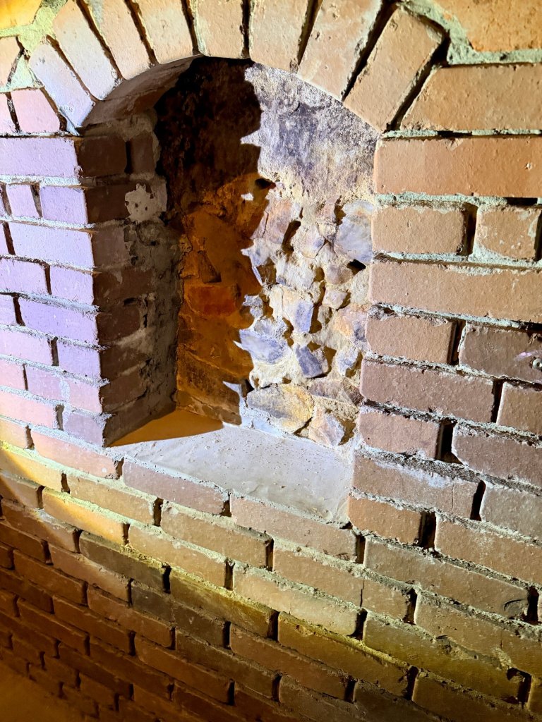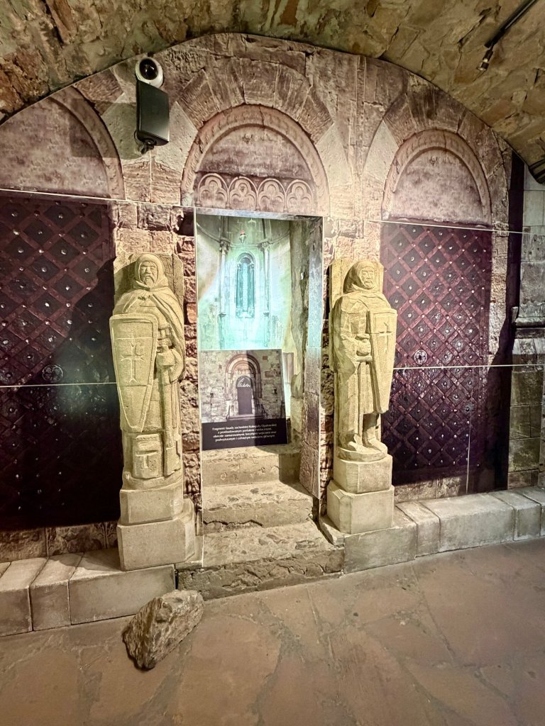 Ściany z cegły i lessu, łuki, chłód i wilgoć. Datowanie na XIII–XIV wiek. Klimat jest naprawdę dobry, surowy i autentyczny. W takich miejscach najchętniej przystajemy i po prostu patrzymy na faktury ścian. Niestety prawie od razu ruszamy dalej.