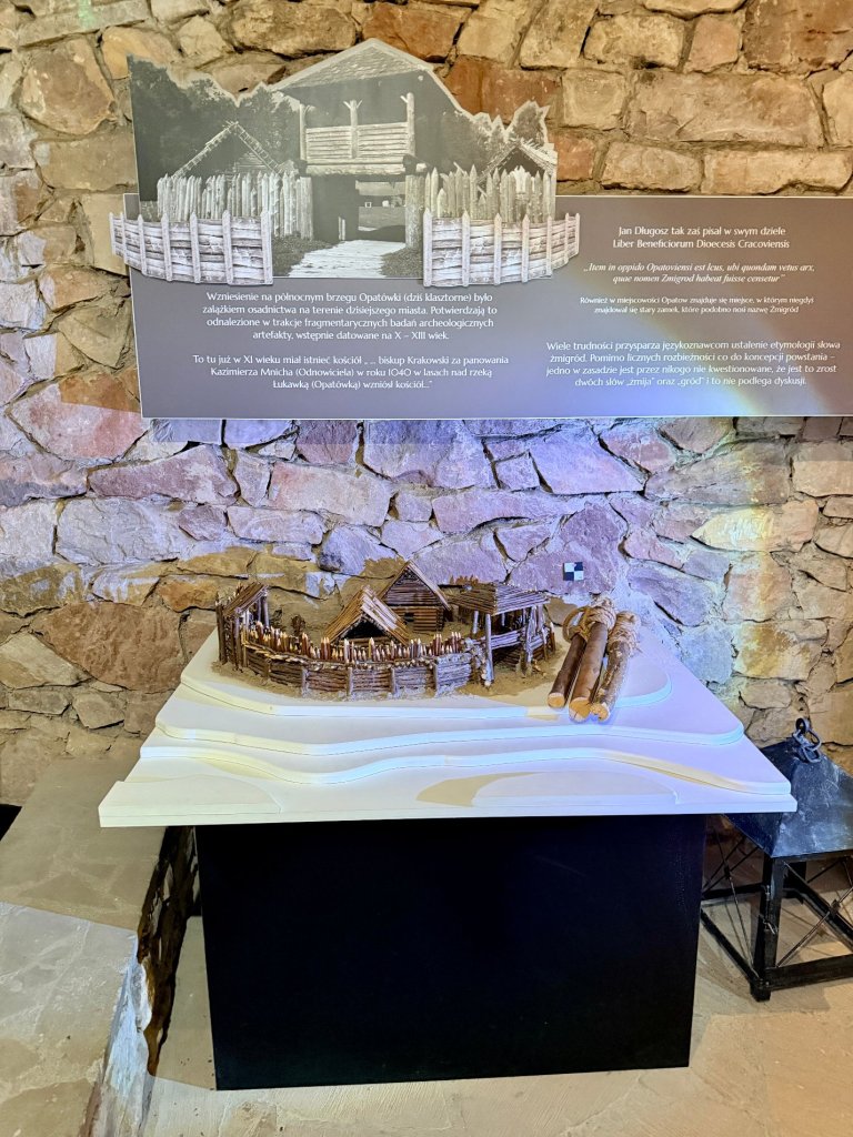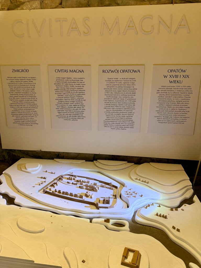 Tutaj pojawia się makieta średniowiecznego Opatowa, nie bardzo mamy czas się jej dokładnie przyjrzeć.