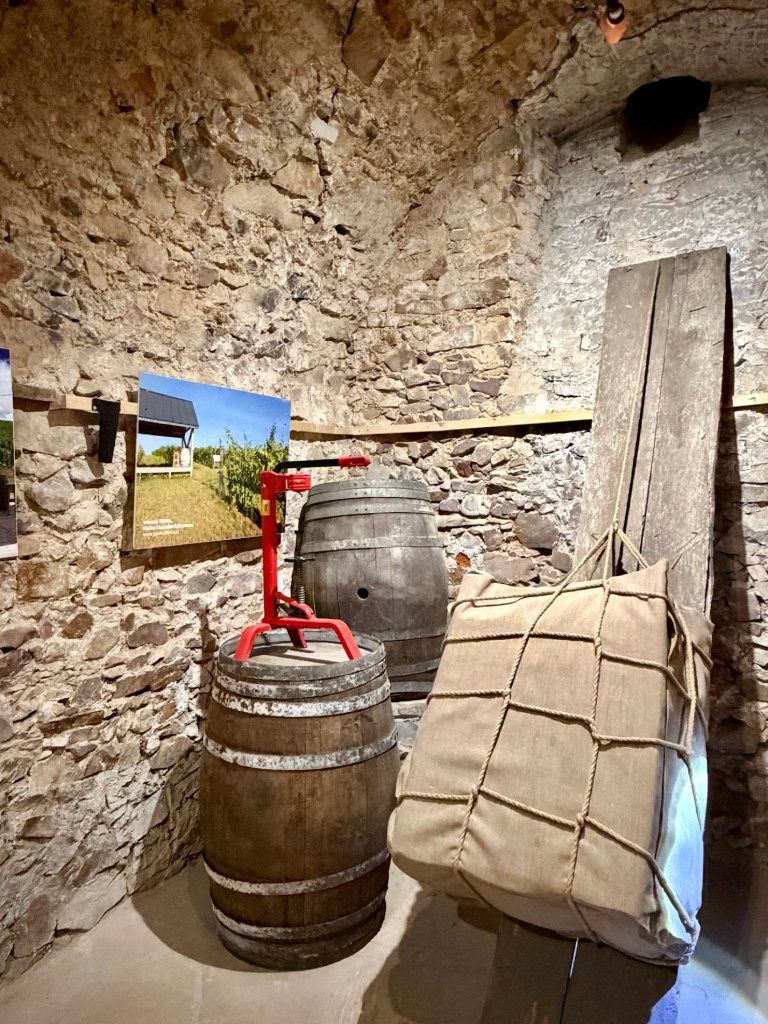 Tu wreszcie robi się bardziej „życiowo”. Widzimy zainscenizowany wlot do magazynu, przez który wyciągano beczki z towarem. Podobno potrafiły ważyć nawet 200 kilogramów.