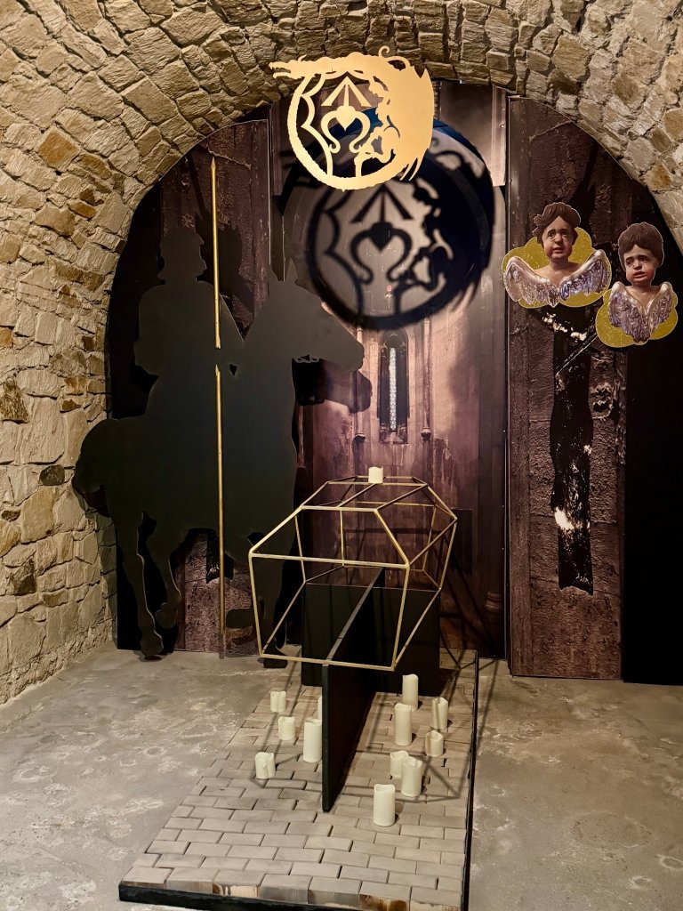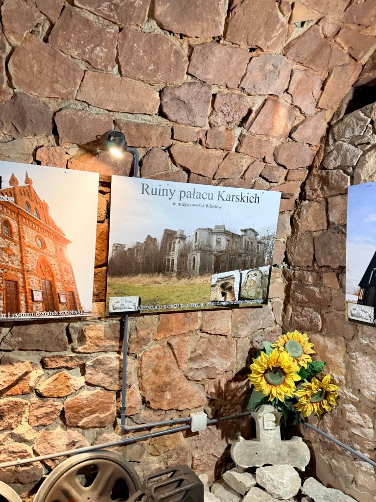 Na ścianach znajdują się fotografie okolicznych zabytków, głównie kościołów. Wygląda to bardziej jak przegląd folderu turystycznego niż część podziemnej trasy. Szybko przechodzimy dalej.