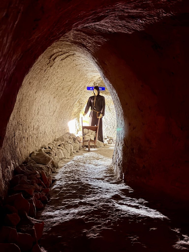 Wszystko zaczęło się od piwnic, z których mieszkańcy kopali kredę na własną rękę. Bez planu, bez nadzoru. Pojedyncze komory łączyły się ze sobą, tworząc coraz bardziej skomplikowany system korytarzy. Szacuje się, że cała sieć może mieć nawet kilkadziesiąt kilometrów. W XIX wieku zaprzestano wydobycia, bo ulice zaczęły się zapadać, a w latach 70. górnicy ze Śląska zabezpieczyli i udostępnili trasę turystyczną. Przewodnik opowiada z pasją i wspomina, że to jedyna taka zabytkowa kopalnia kredy do pisania w Europie. Słucha się tego naprawdę dobrze.