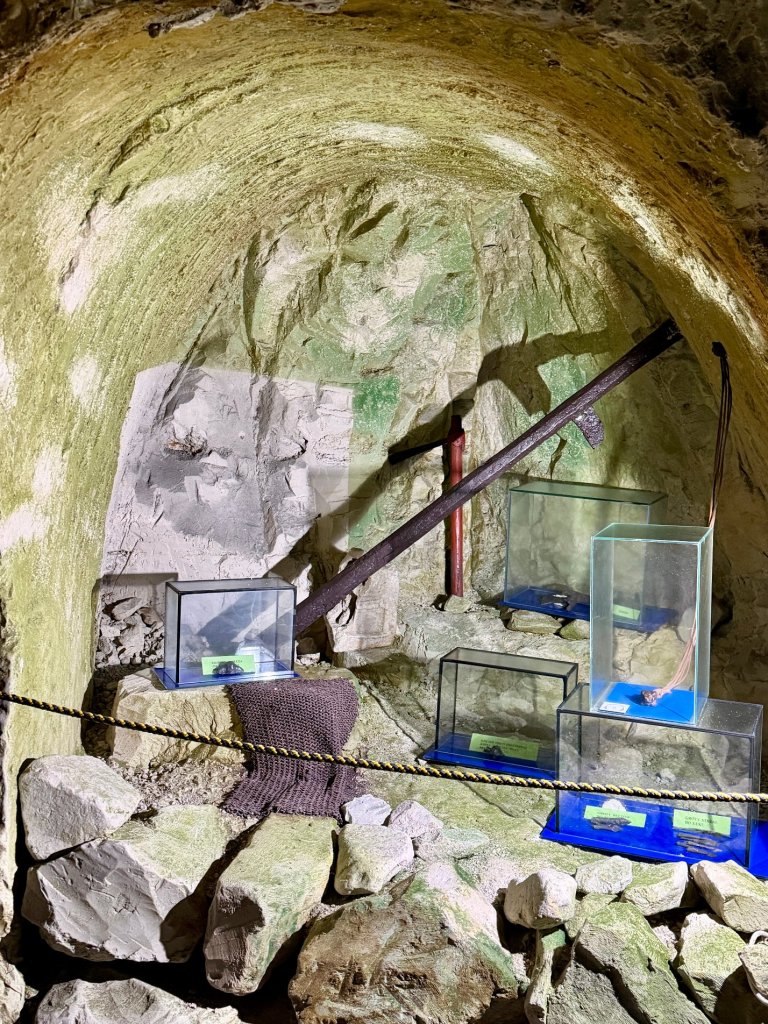 Jest też ekspozycja pokazująca wydobycie kredy metodą odkrywkową. Ta sala daje wreszcie odrobinę przestrzeni i oddechu po wąskich korytarzach.