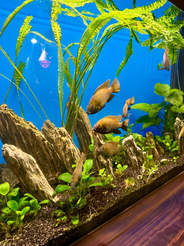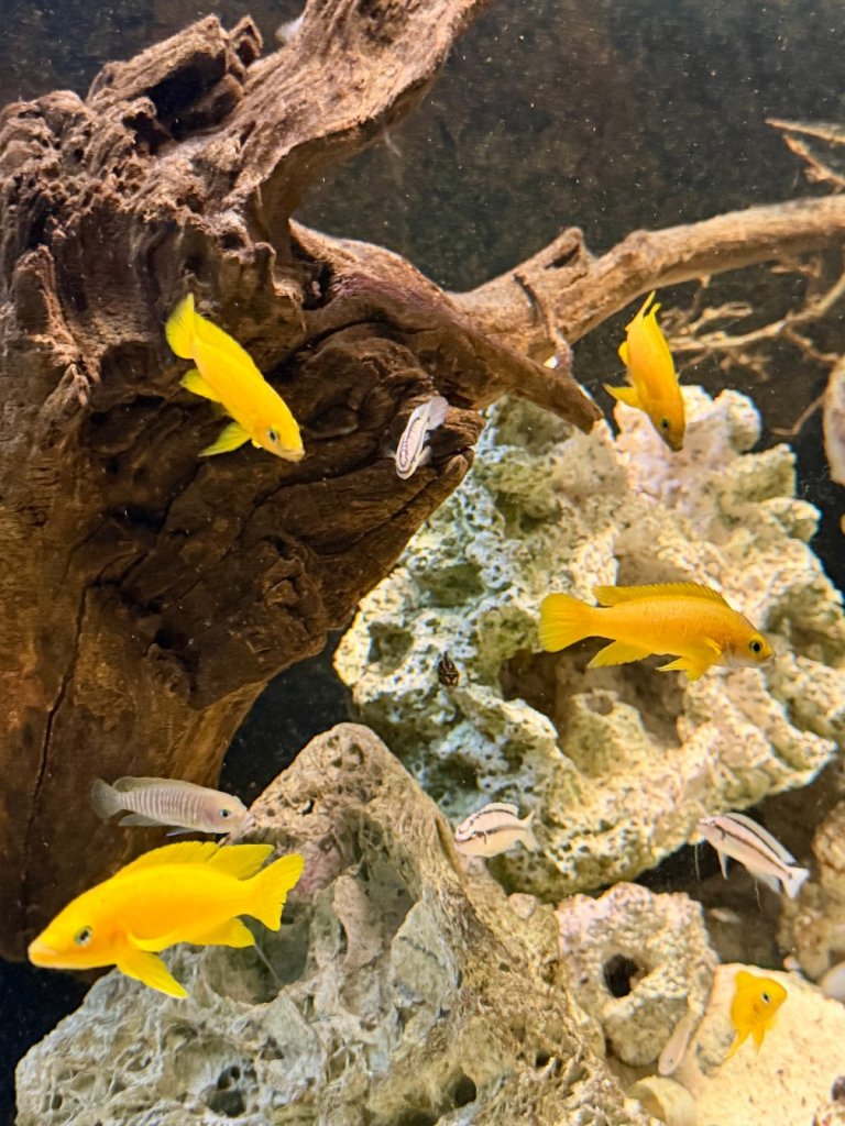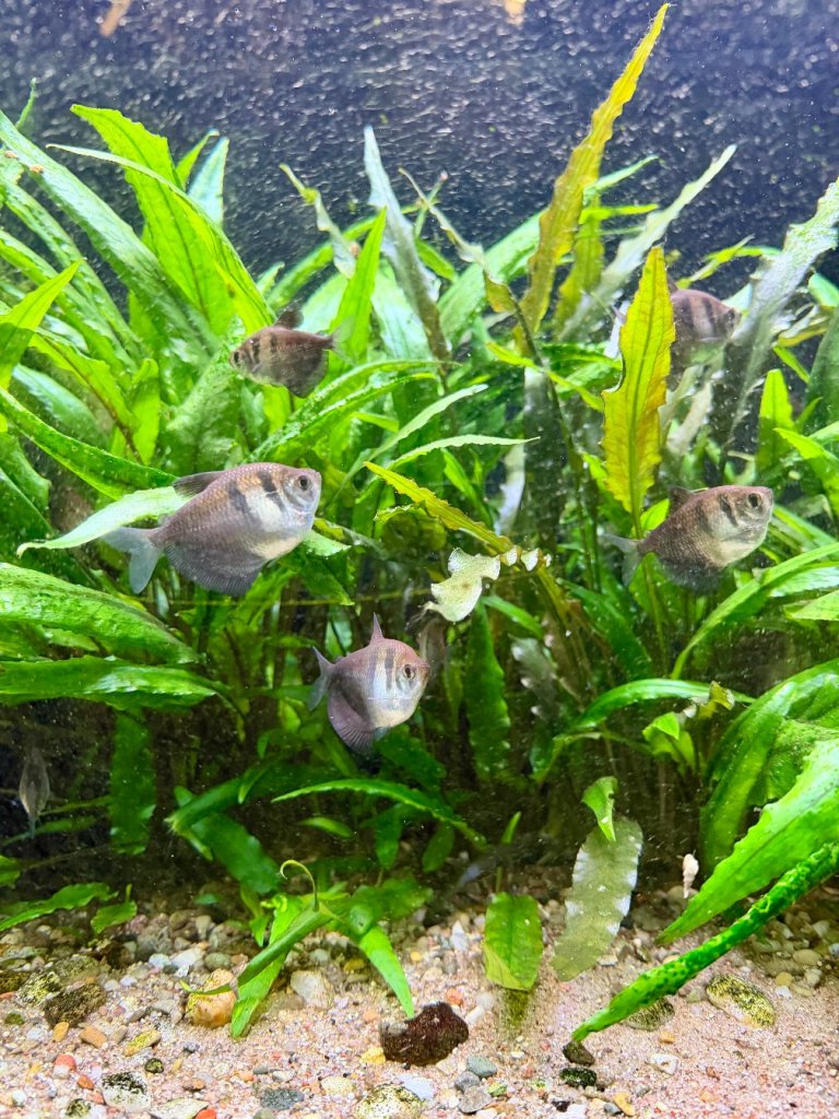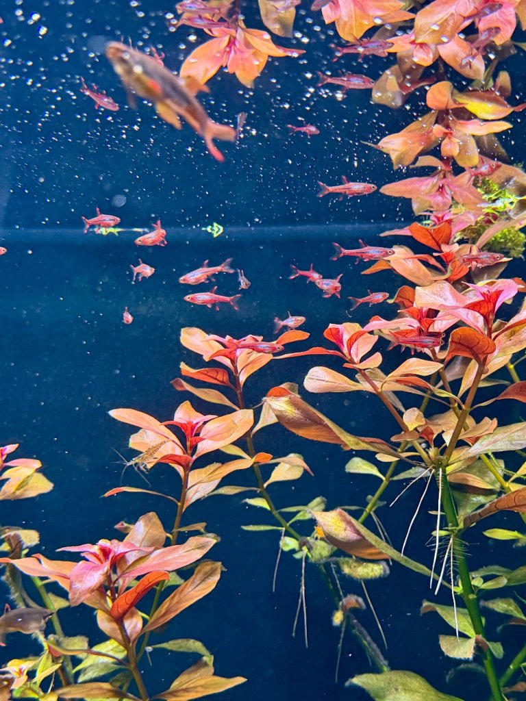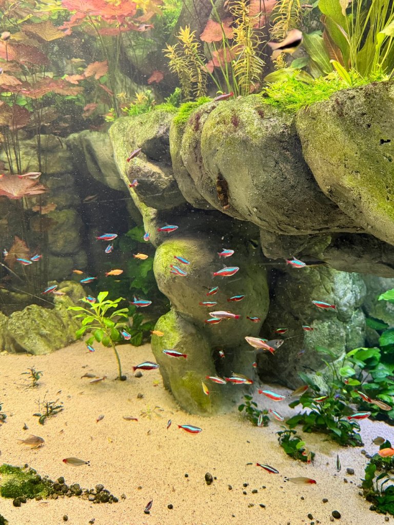 Potem pojawiają się tilapie, danio perłowe, księżniczki burundii, naskalniki, nepalki myanmarskie. Najbardziej przyciągają wzrok kardynałki chińskie i tetra królewska, małe, błyszczące jak neony.