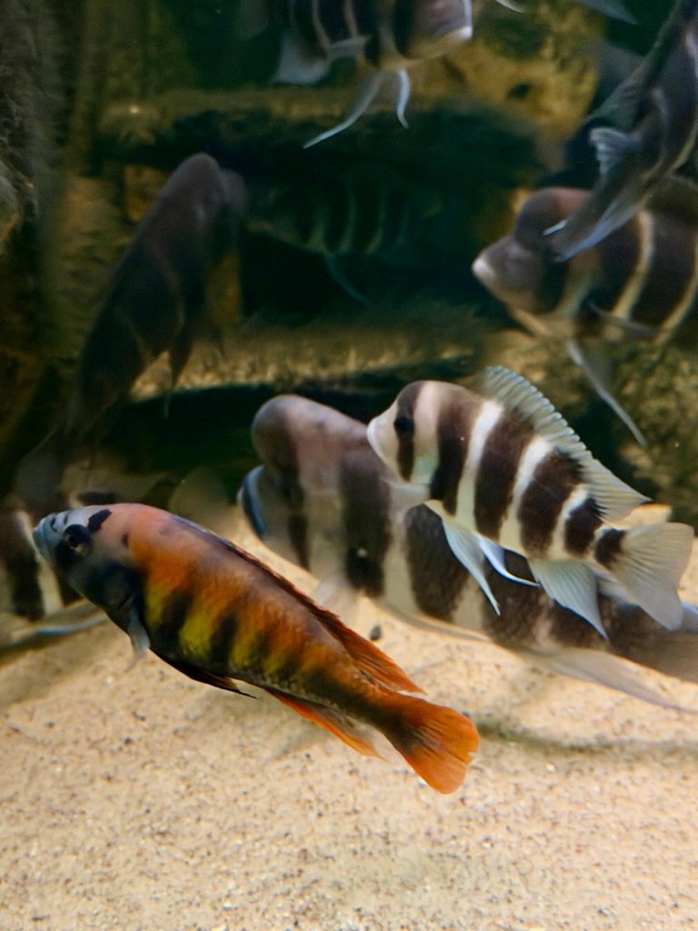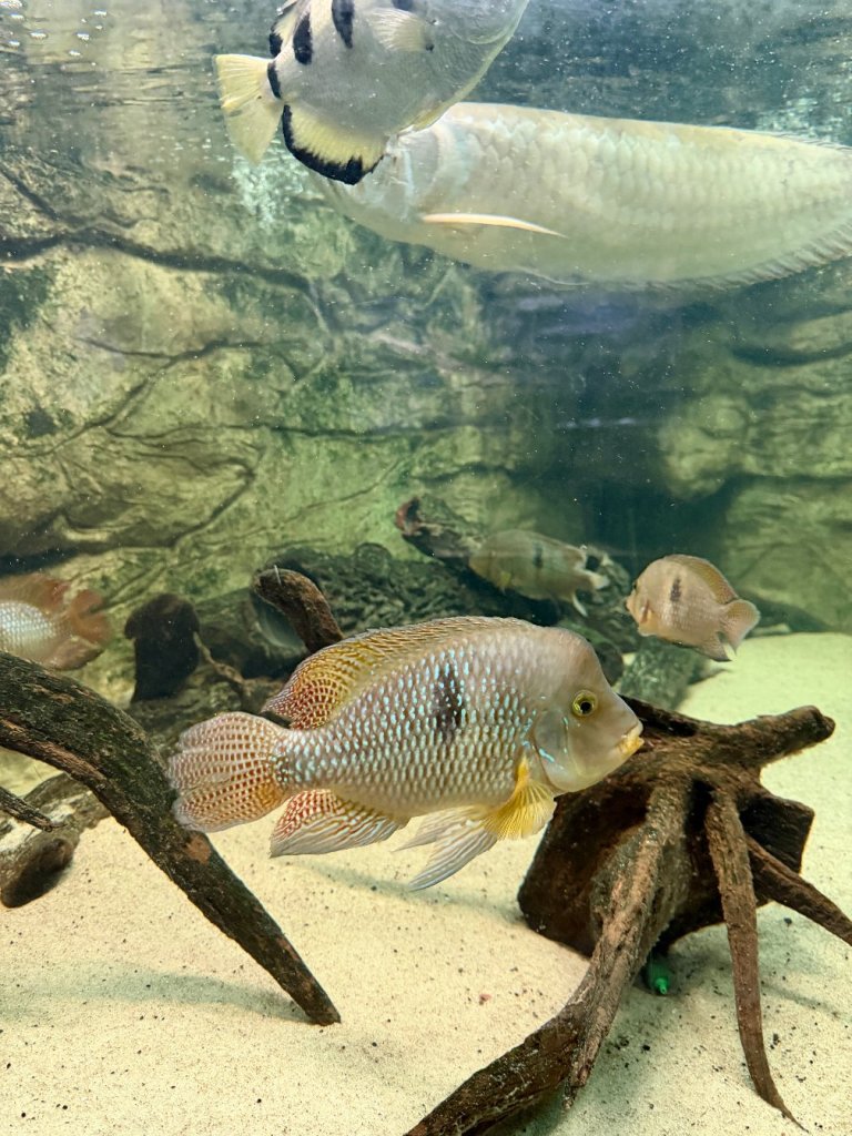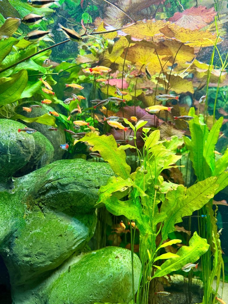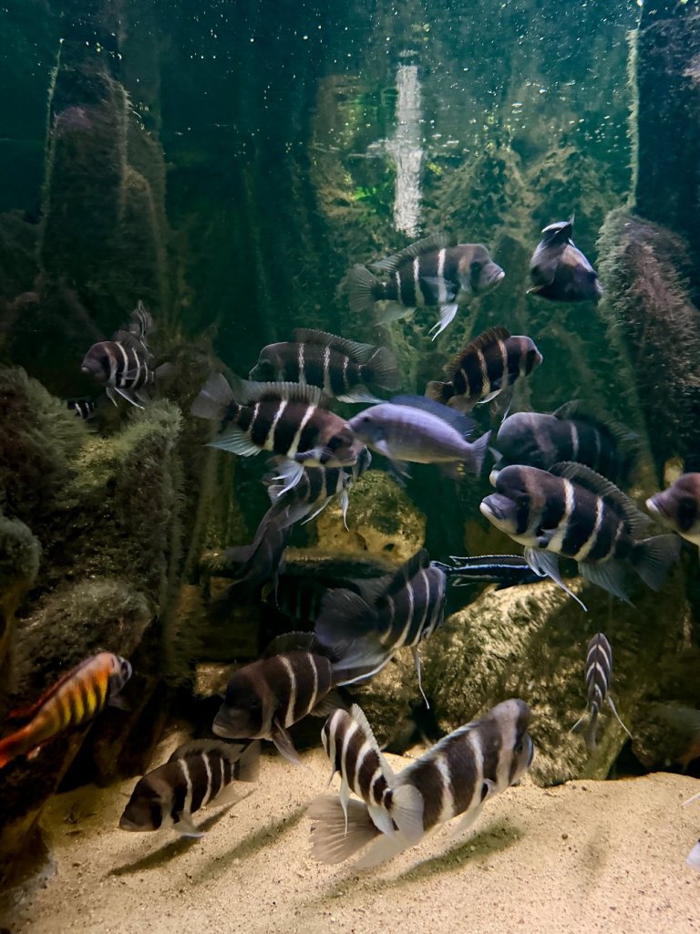 Jedne akwaria pełne są drobnych, migoczących rybek, inne mają tylko kilka dużych, powolnych osobników przy dnie. Kolory, paski, plamki, połysk łusek w świetle. Chodzimy od szyby do szyby i po prostu patrzymy. Czas płynie tu wolniej.