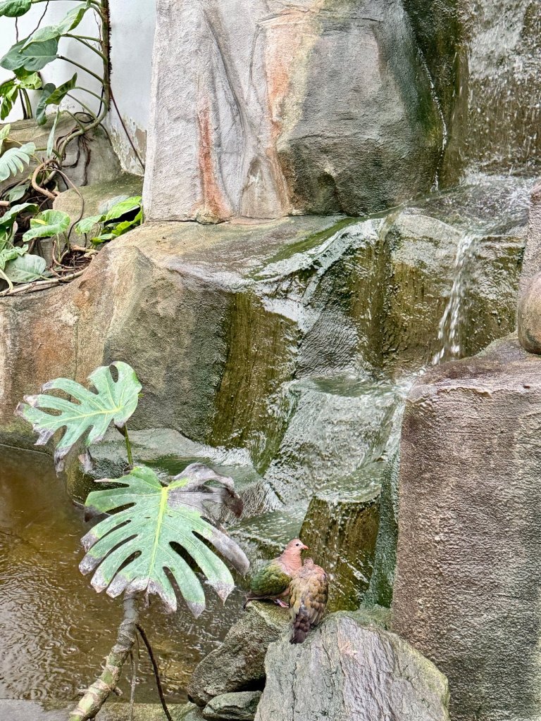 Kolejny pawilon jest dosyć nietypowy. Jest w nim ciepło, wilgotno, znajduje się wodospad, małe jeziorko, po którym rożne gatunki kaczek pływają sobie swobodnie.