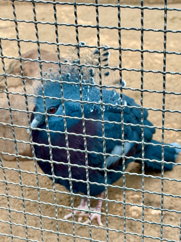 Małe chodzą i latają wokół nas. Duże są w wolierach. Przyglądamy się przez okratowane woliery ptakom…