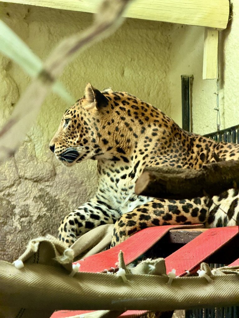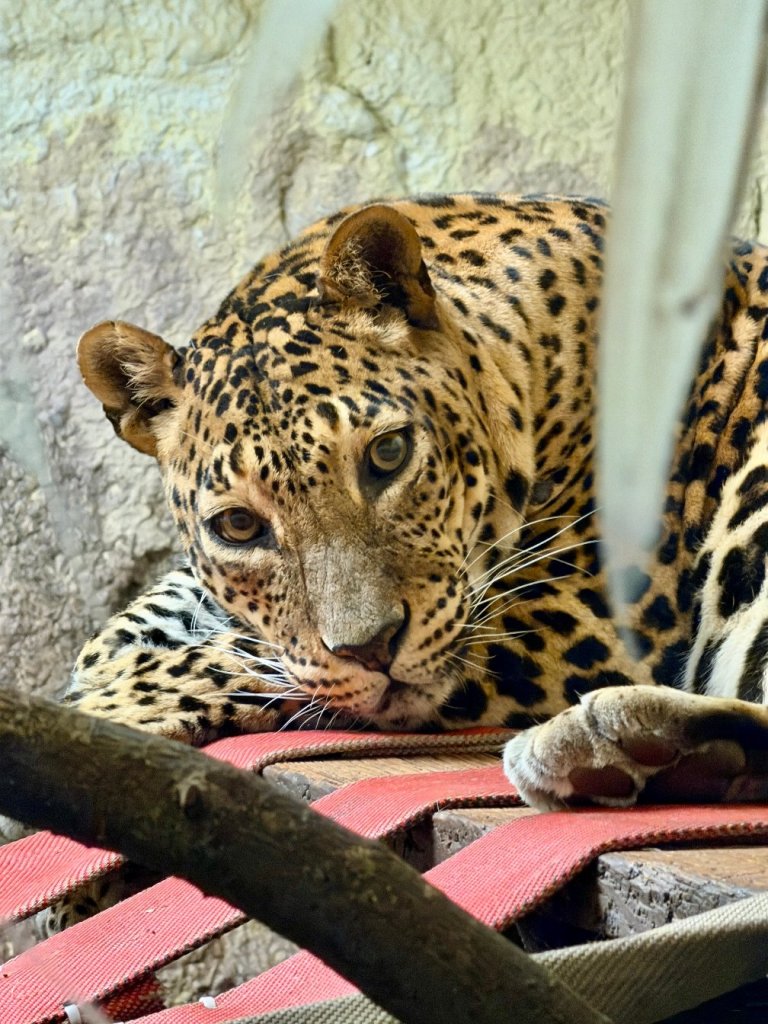 Za szybą leży pantera. Cętki, ciężkie łapy, spokojny oddech. Najpierw się przeciąga i relaksuje, potem zaczyna krążyć. Drapanie pnia drzewa wygląda dokładnie jak u domowego kota, tylko z siłą, która robi wrażenie.