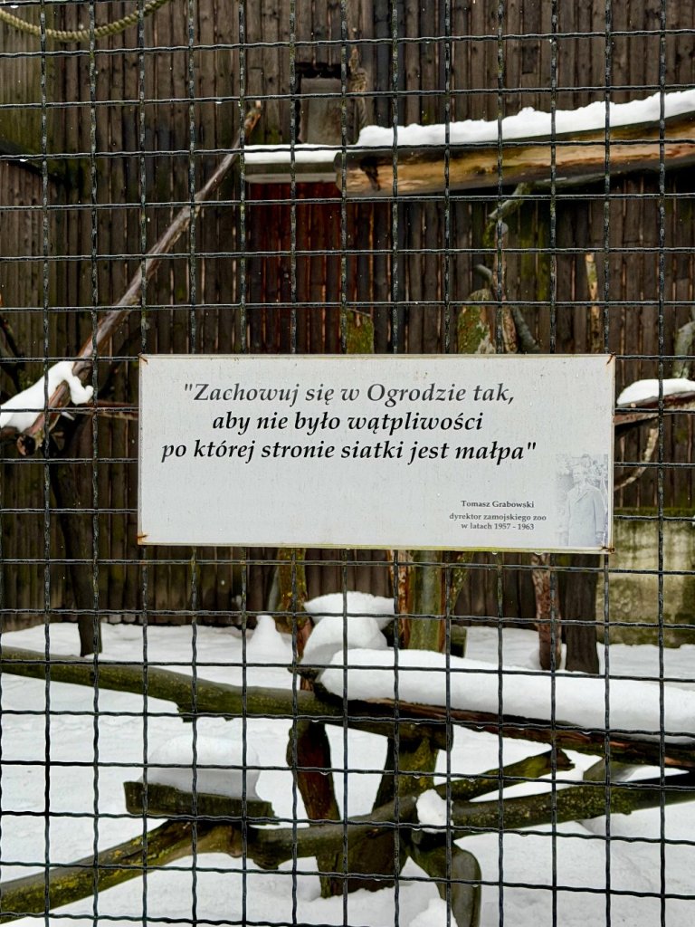 Zoo w Zamościu okazało się idealnym „planem B”. Trochę spaceru, trochę ciepłych pawilonów, dużo spokojnego patrzenia i czytania ciekawostek z tabliczek. Bez tłumów, bez pośpiechu, bez presji „zaliczania atrakcji”. Zatrzymywaliśmy się tam, gdzie coś nas zaciekawiło, staliśmy dłużej przy rysiach, przy panterze, przy małpach czy przy gadatliwej kakadu, która ewidentnie uznała nas za swoich.