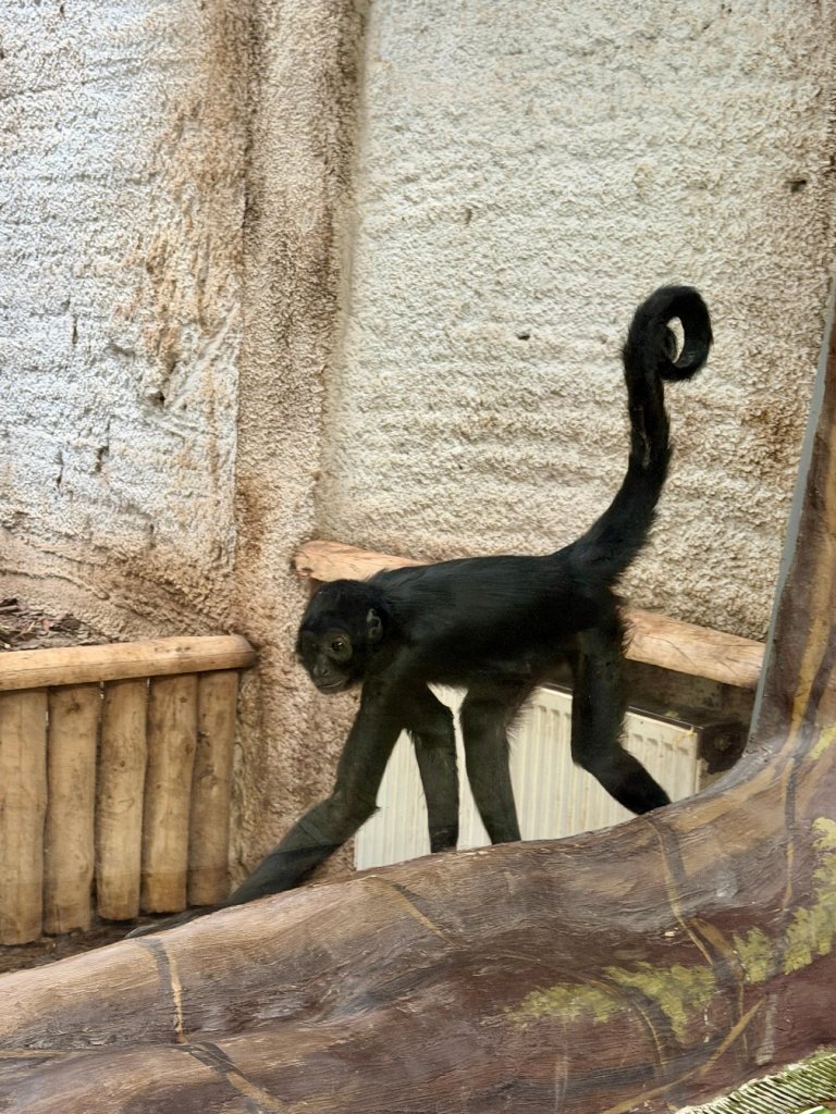 Potem czepiaki ciemne. Patrzę, jak poruszają się po wybiegu z niesamowitą lekkością. Długie kończyny, chwytne ogony, ruchy płynne i sprężyste. Skaczą, podbiegają, jedna przysiada bliżej szyby i patrzy na nas czarnymi, błyszczącymi oczami. Mają w sobie coś hipnotyzującego. Mogłabym stać i obserwować je bez końca.