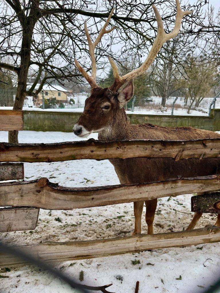 Na początku nie wygląda to obiecująco. Śnieg zalega na wybiegach, zwierząt prawie nie widać, chodniki posypane mokrym śniegiem i piaskiem. Przez chwilę zastanawiamy się, czy w ogóle był sens tu przyjeżdżać. A potem wchodzimy do pierwszego pawilonu… i nagle wszystko zaczyna się zmieniać.