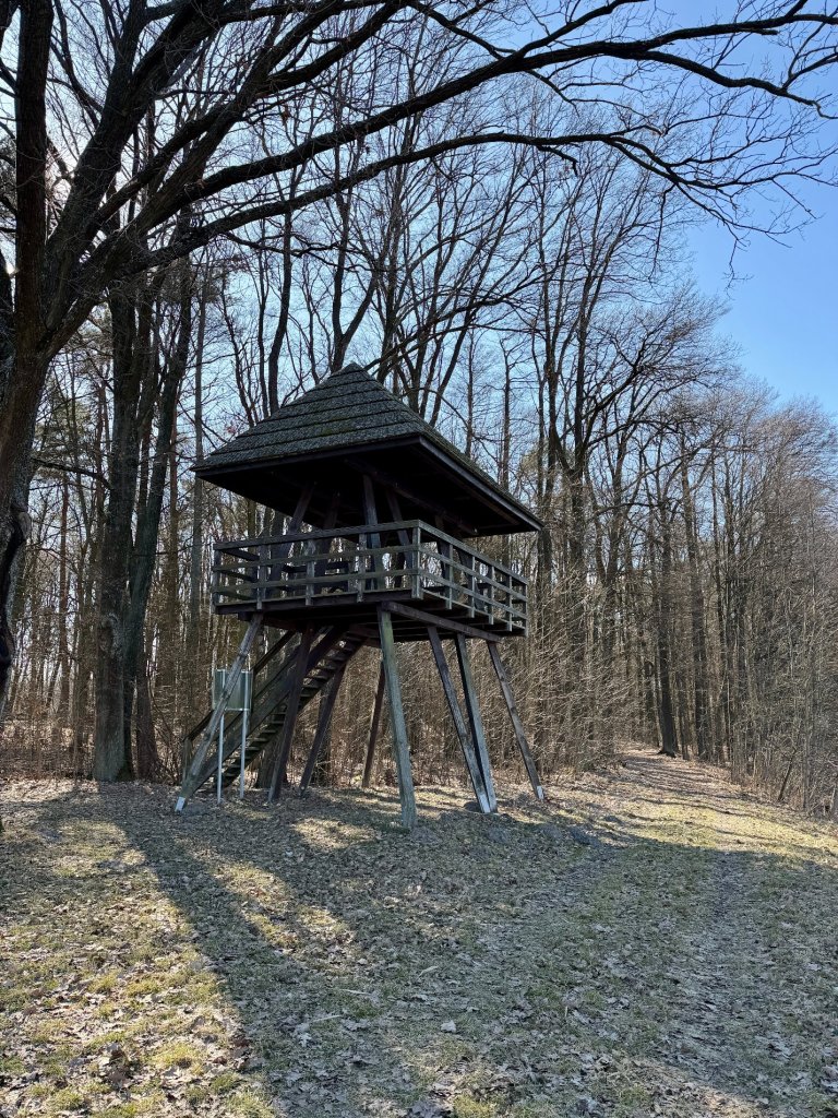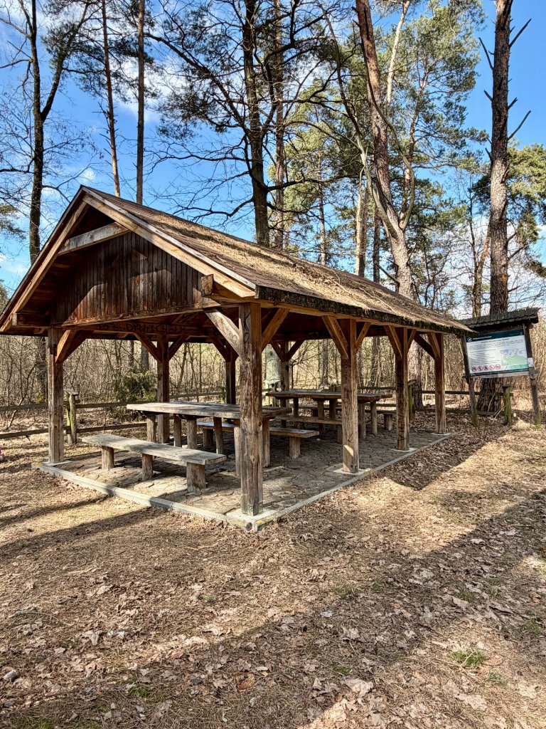 Zaczyna się bardzo zwyczajnie w sobotnie popołudnie. Parking przy drodze, wiata, kilka ławek i miejsce na ognisko. Wszystko uporządkowane, przygotowane, trochę bardziej jak punkt startowy niż wejście w las. Zatrzymujemy się na chwilę, drewno pod ręką jest szorstkie, nagrzane od słońca, ale powietrze wciąż chłodne. Jest jasno i spokojnie.
