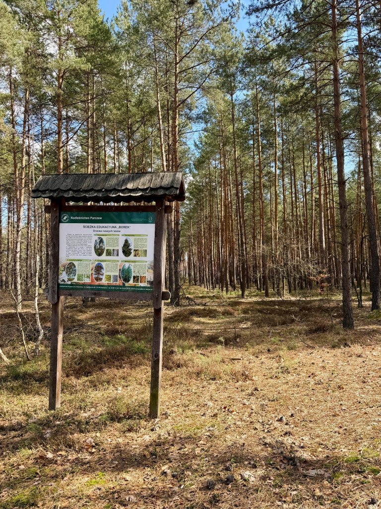 Tabliczka rozszerza perspektywę i wprowadza Nadleśnictwo Parczew jego historię, zmiany i sposób zarządzania tym terenem. Czytamy i zaczynamy patrzeć inaczej, bo ten las nie jest „sam dla siebie”. To przestrzeń, która była planowana, przekształcana i nadal się zmienia. I nagle zaczyna się to zauważać w detalach.