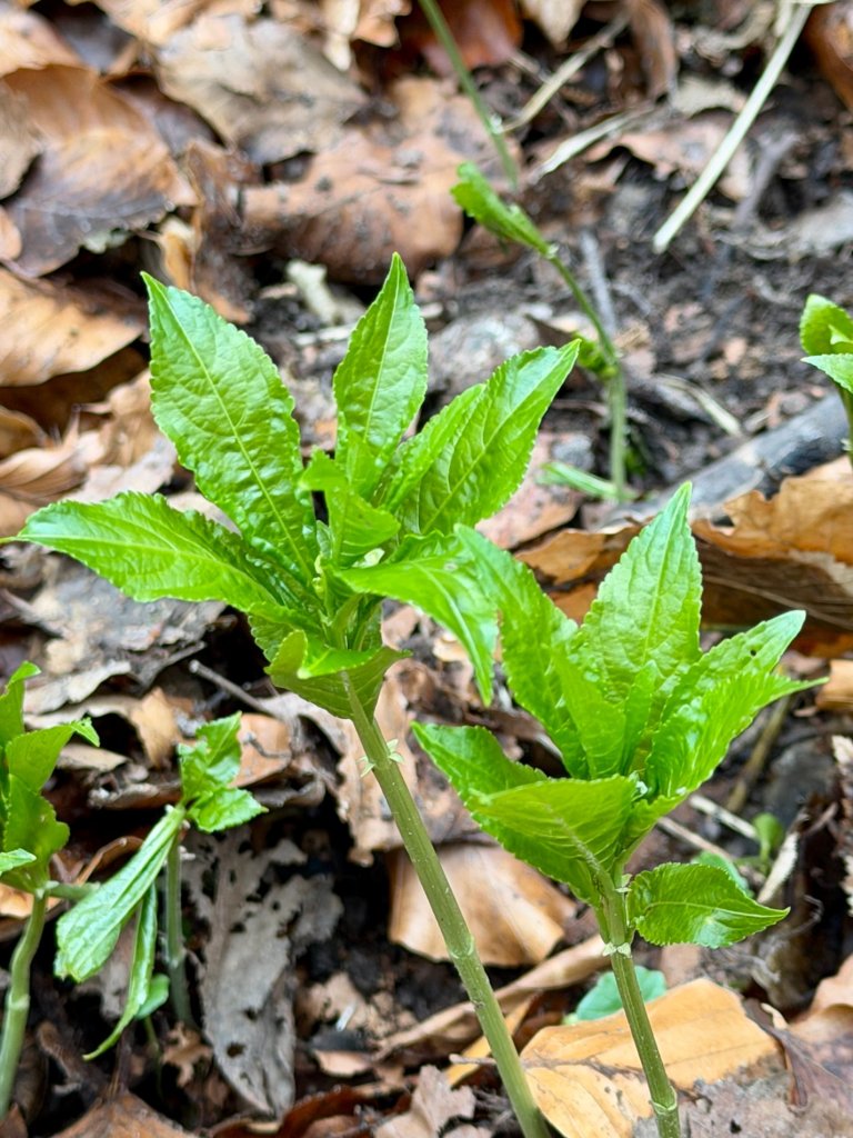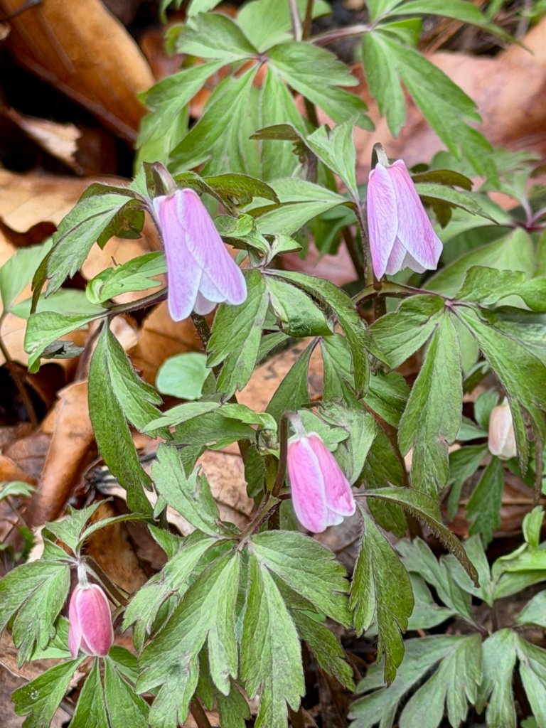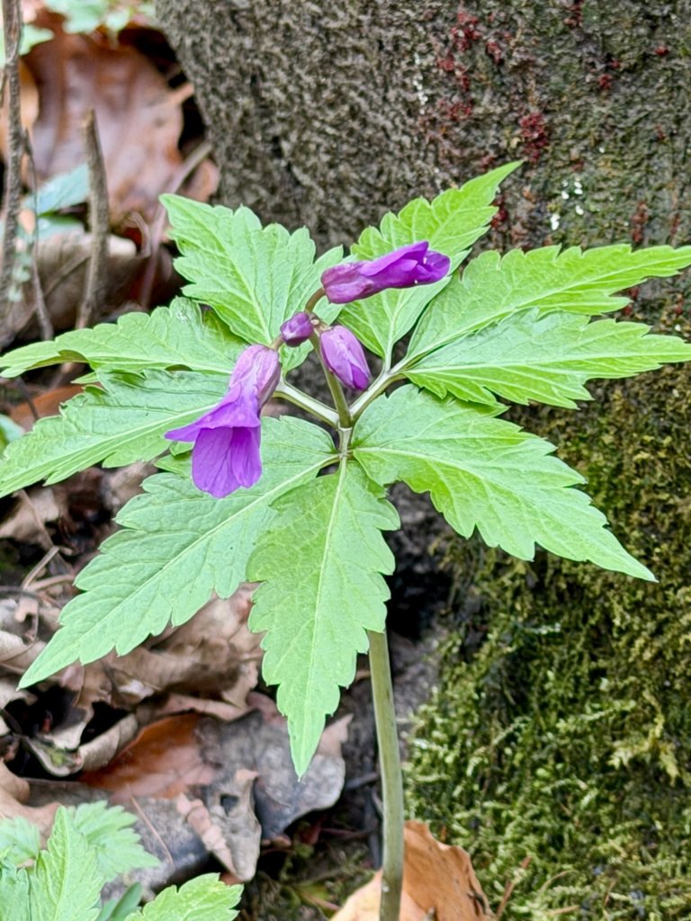 Idziemy dalej. Las nadal wygląda bardzo jesiennie, dominują brązy, szarości, wilgotne liście pod nogami. Ale pojawia się coraz więcej zieleni. Najpierw delikatnie, gdzieś przy ziemi. Potem trochę więcej. Małe listki, świeże, jasnozielone. Wyróżniają się na tle wszystkiego dookoła. I nagle trafiamy na fioletowe kwiaty. Niewielkie, ale intensywne. Takie, które od razu przyciągają wzrok. Jeden z tych momentów, kiedy zatrzymujemy się bez słów. Bo to już nie jest „zapowiedź wiosny”. To jest jej pierwszy, konkretny znak.
