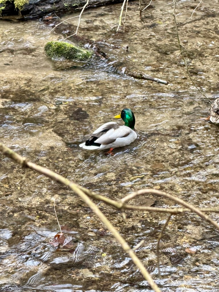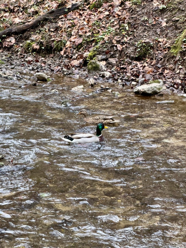 Ścieżka prowadziła dalej pod górę, łagodnie, ale już odczuwalnie. Po lewej stronie towarzyszyła nam rzeka – chwilami widoczna między drzewami, chwilami tylko słyszalna. I właśnie dźwięki były tu najmocniejsze: ptaki, które coraz wyraźniej dawały o sobie znać.