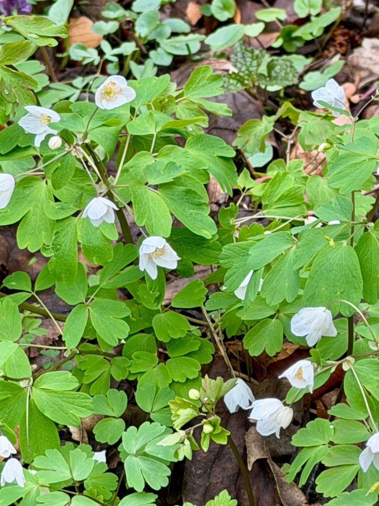 Idziemy dalej. Jest chłodno. Trochę za chłodno, żeby nazwać to wiosną. Wszystko wokół nadal bardziej przypomina późną jesień, brązy, szarości, wilgotna ziemia i liście, które jeszcze nie zdążyły ustąpić miejsca nowym. Ale gdzieś między tym wszystkim pojawiają się pierwsze sygnały zmiany. Małe, białe kwiaty przy ziemi. Niewiele ich, trzeba się dobrze przyjrzeć, żeby je zauważyć. Ale są. I to wystarcza.