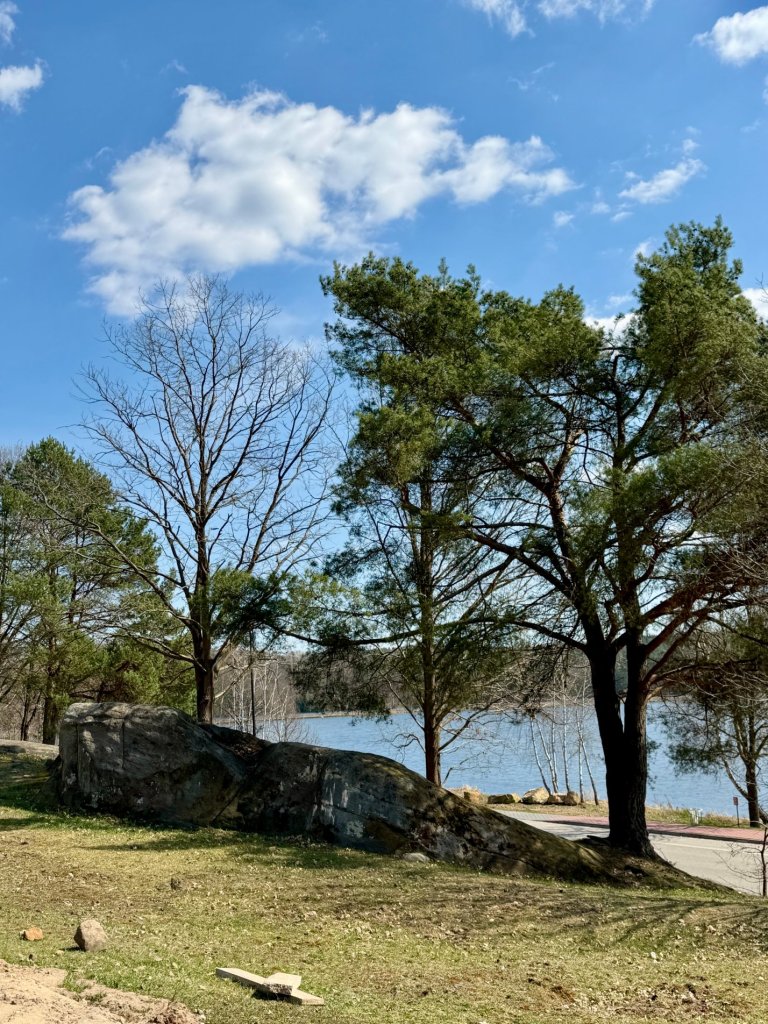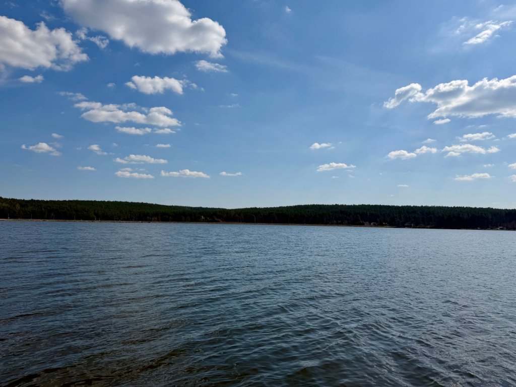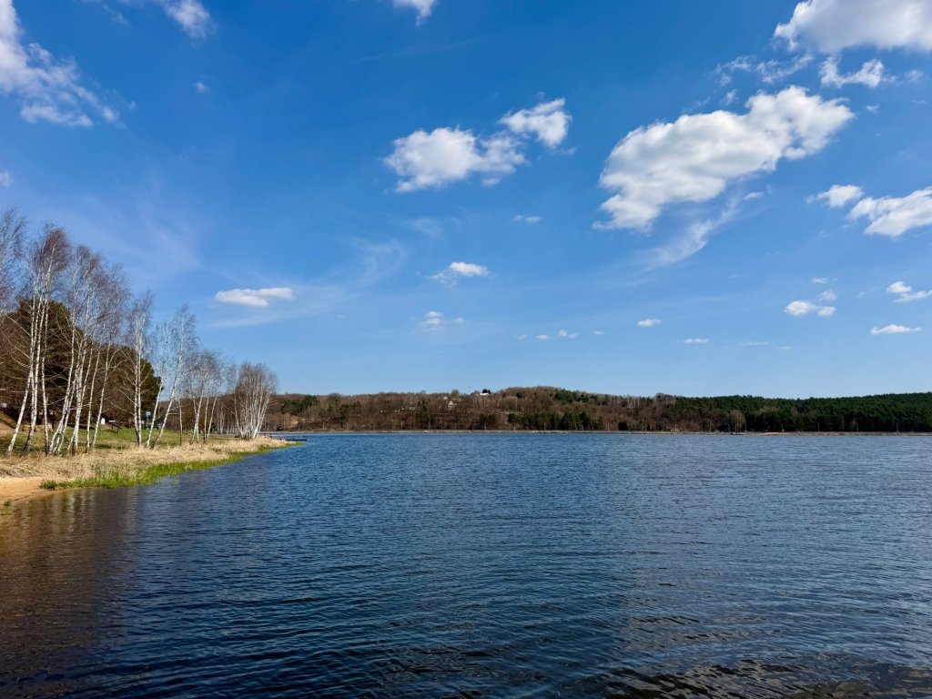Spacer zaczynamy w okolicach zalewu, gdzie od razu widać, że to popularne miejsce wypoczynku. Duży akwen, wędkarze, budki z jedzeniem, lody, park linowy i place zabaw, wszystko wskazuje na to, że latem musi być tu naprawdę tłoczno. Mimo rekreacyjnego charakteru okolicy, postanawiamy ruszyć dalej, trochę wyżej, żeby zobaczyć coś więcej niż tylko nadwodny spacer.