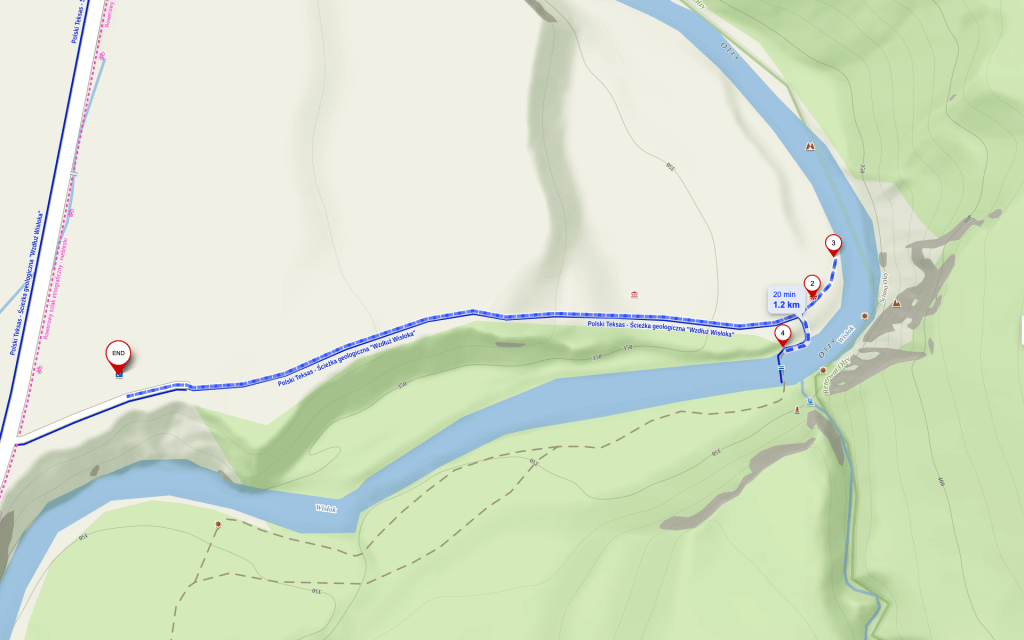 Trasa: Parking – Przechodzimy przez bramę za parkingiem – Mijamy punk informacji i schodzimy w dół – Mijamy wiatę – Dochodzimy do rzeki – Nad rzeką można przespacerować się w lewo, lub przejść przez bród do wodospadu (brak jest mostku/kładki) – Powrót do parkingu tą samą trasą