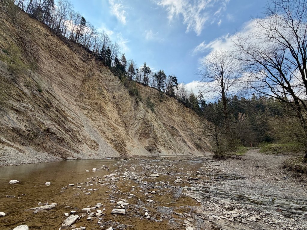 W skałach można też dostrzec charakterystyczne warstwy i fałdy, efekt ruchów górotwórczych, które wypiętrzyły Karpaty. To właśnie przez te procesy dawne osady zostały „zgniecione” i uniesione, tworząc takie struktury jak tutaj.
