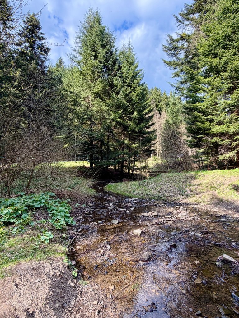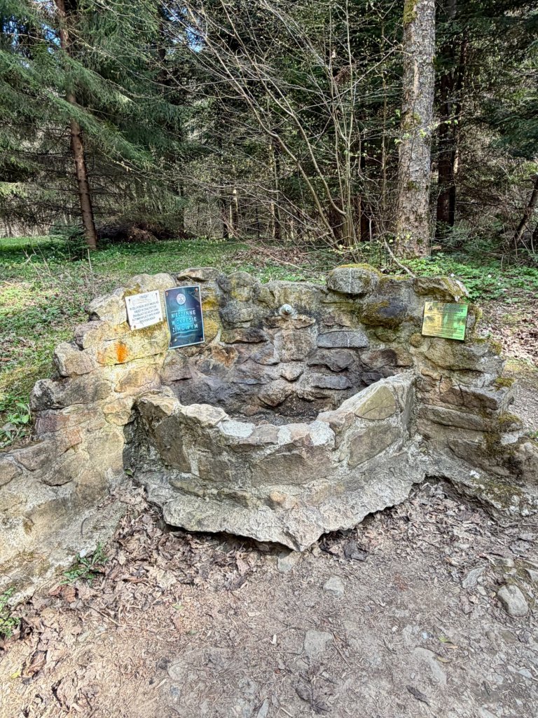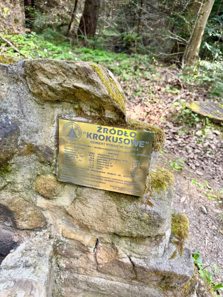 Zaczynamy schodzić. Najpierw przez małą łączkę, potem znowu w las. Przechodzimy przez mostek i dalej w dół, robi się coraz ciemniej, ale już wiemy, że zbliżamy się do końca. Ścieżka zakręca, miejscami znowu stromo, aż w końcu pojawiają się ławki i kawałek dalej docieramy do wiaty i źródełka Krokusowego.