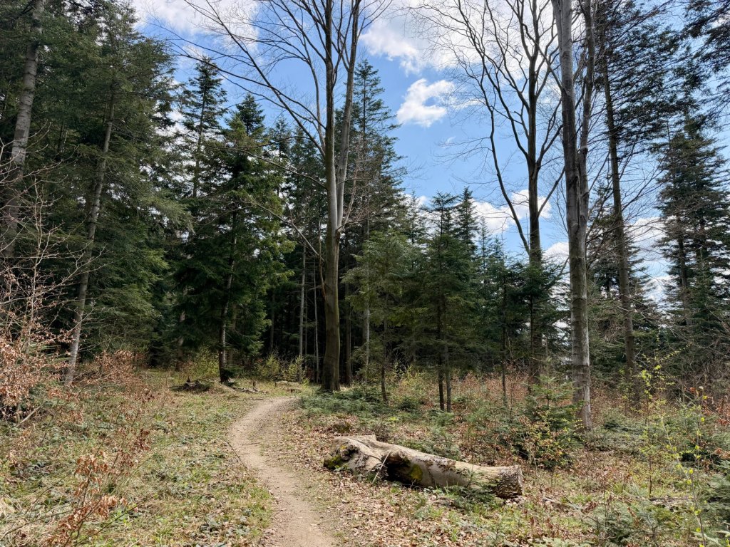 Raczej tak, ale ze świadomością, że to nie jest „lekki spacer”, tylko trasa, która potrafi zmęczyć bardziej, niż się wydaje na początku. Chętnie wrócilibyśmy tu przy innej, mniej pochmurnej pogodzie i może w bardziej zielonym okresie, żeby zobaczyć ten las w pełni życia.