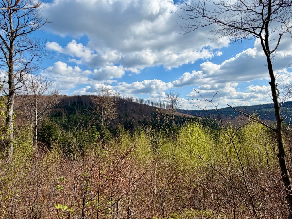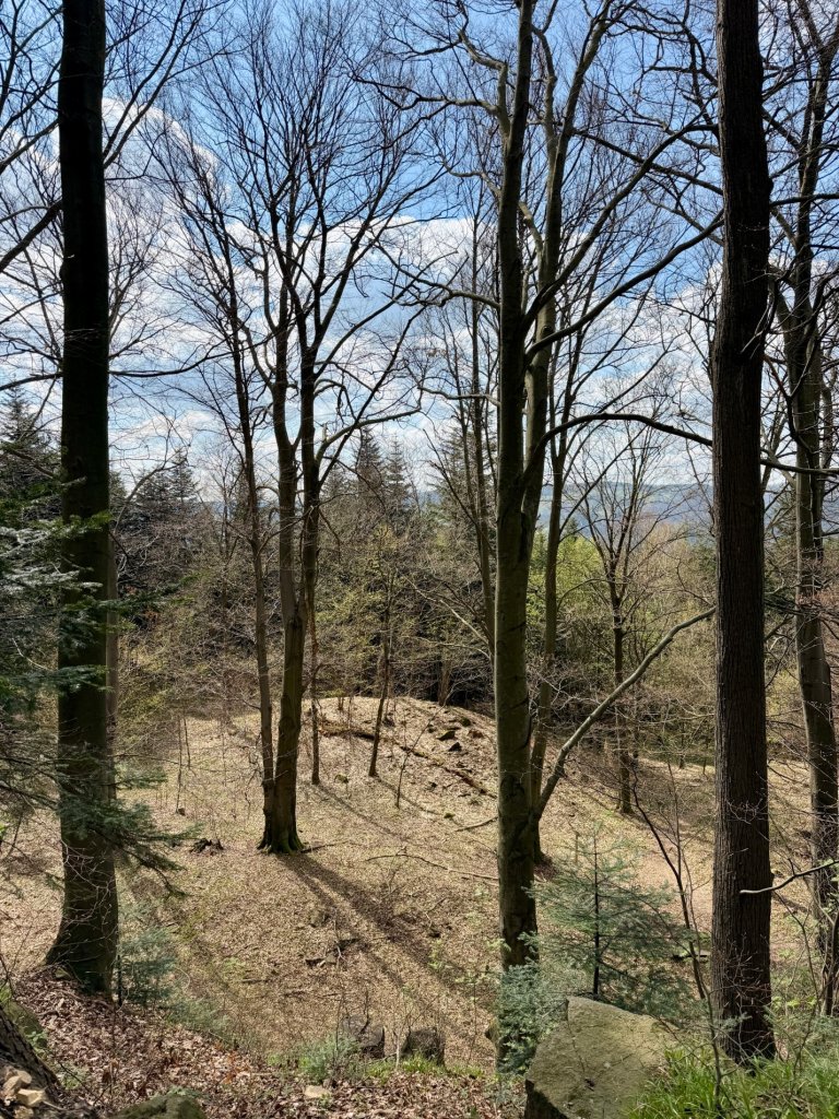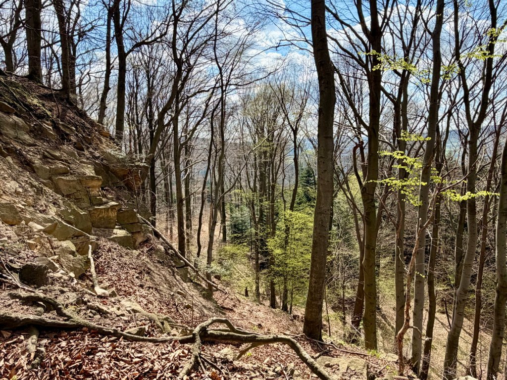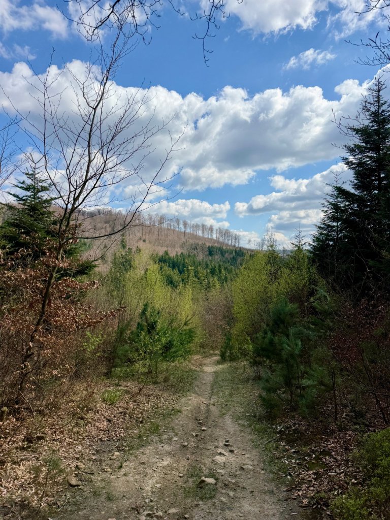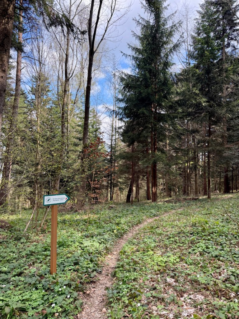 Jest połowa kwietnia. Rano byliśmy na ścieżce w dolinie Wisłoka, a popołudniu decydujemy się na coś krótszego, plan jest prosty: podjechać i wejść tylko na szczyt Zamczyska. Taki szybki spacer na zakończenie dnia. Jak to zwykle bywa, plany swoje, a rzeczywistość swoje, finalnie wychodzi nam cała trasa Ścieżki przyrodniczej Rymanów Zdrój.