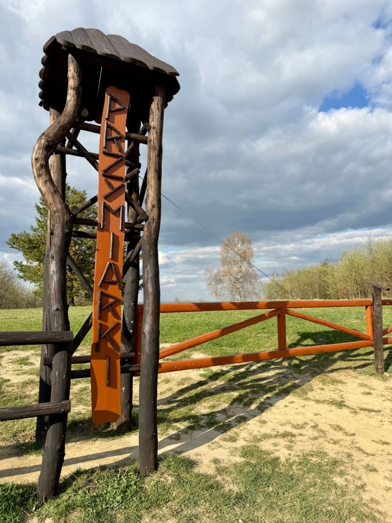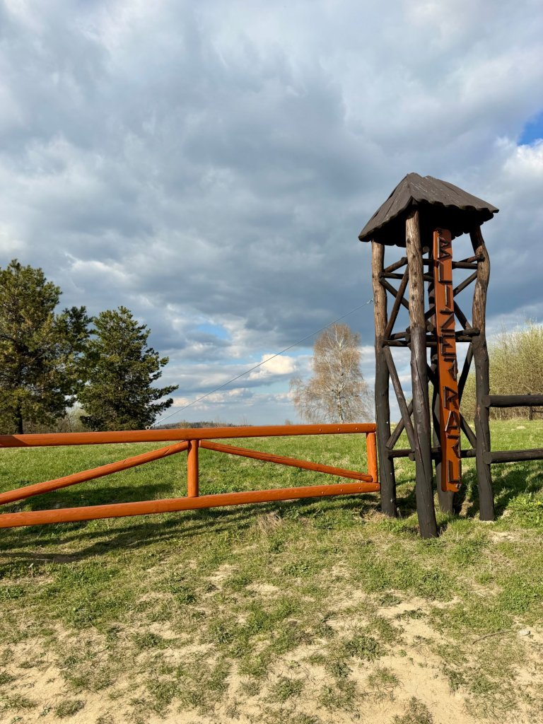 Wiemy, że można tu dojść szlakiem, to nie jest tylko punkt „na podjazd”. Ale my trafiamy tu trochę przypadkiem, trochę z potrzeby chwili. Wracamy ze ścieżki w Rymanowie-Zdroju, która dała nam bardziej w kość, niż się spodziewaliśmy. Więc to bardziej przystanek niż cel sam w sobie. I w tej roli sprawdza się idealnie.