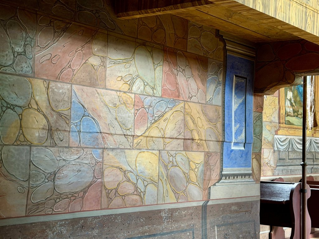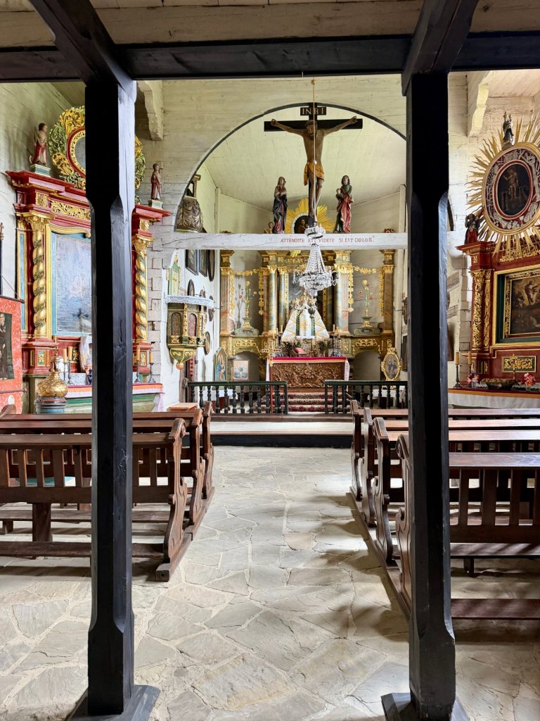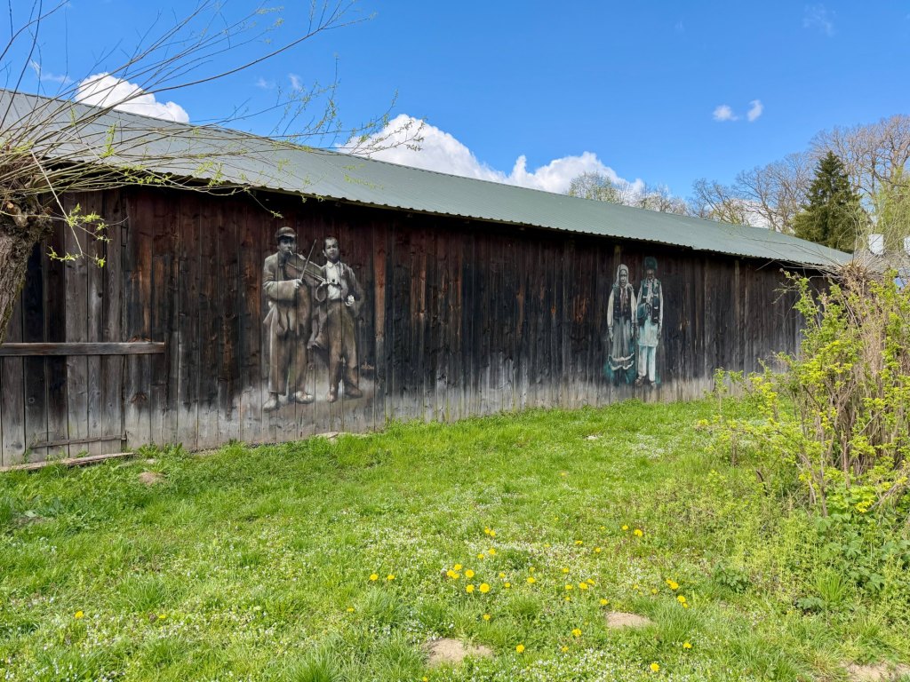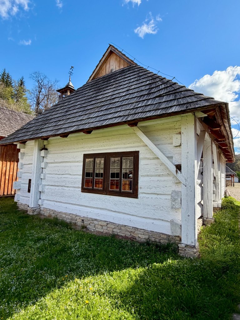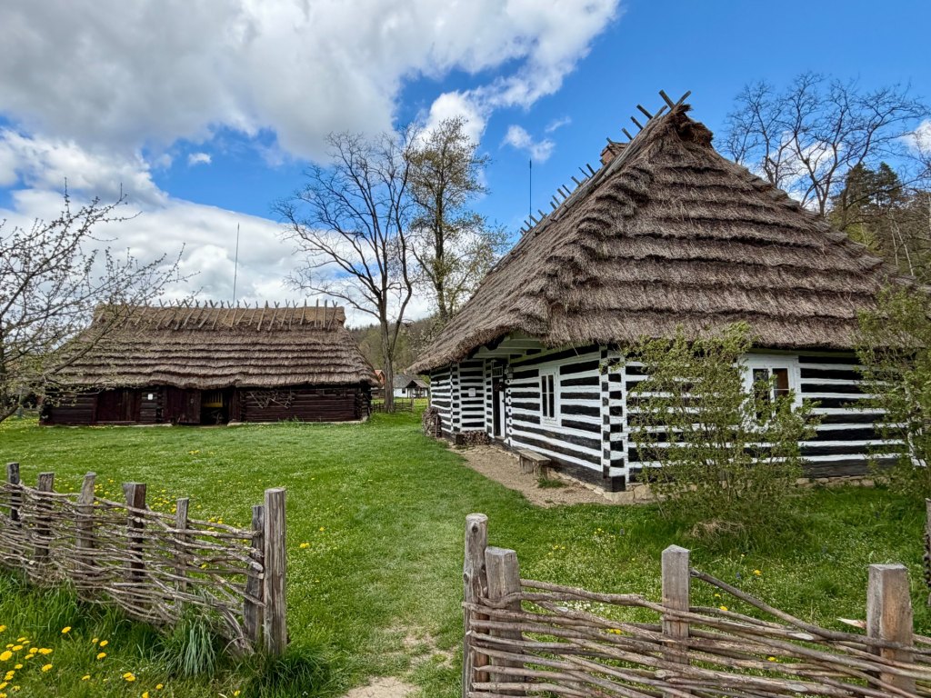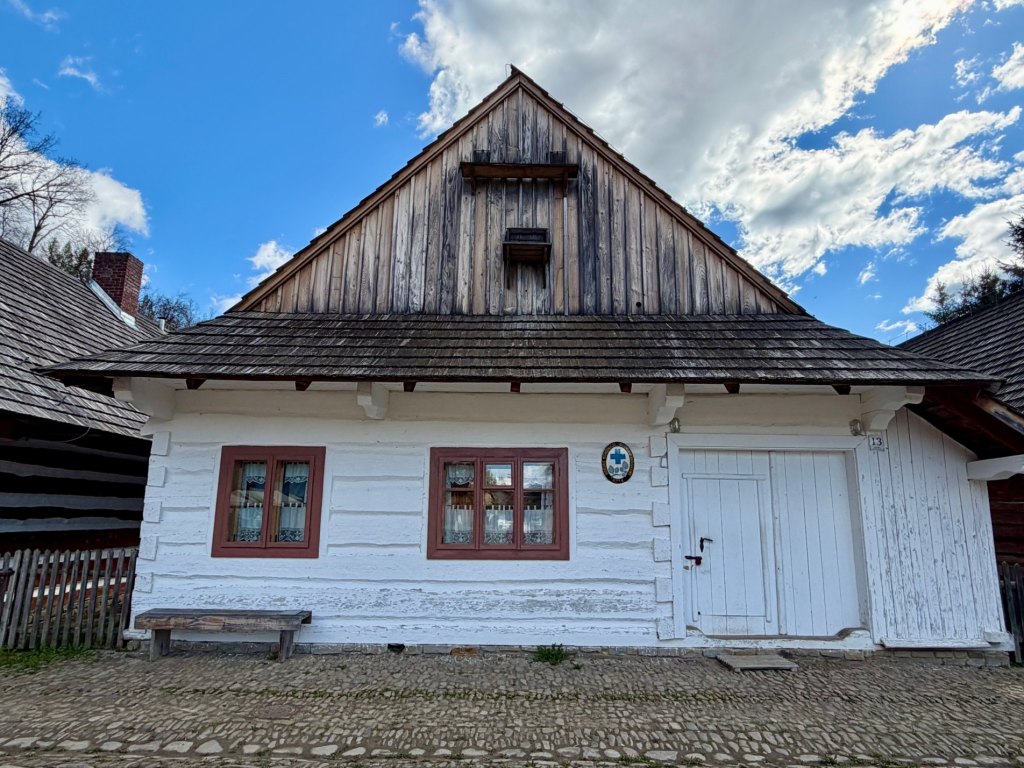 Mimo to zaglądamy do kolejnych chat, szkoły, kościoła i plebanii, a jedna z chat przyciąga uwagę białymi kropkami na ciemnym drewnie, podczas gdy inne mają charakterystyczne bielone pasy. Jest tu też wiatrak, kapliczki i remiza strażacka. Na chwilę wychodzi błękitne niebo, wiatr przegania chmury i nagle okolica zrobiła się bardziej swojska, wiejska, przyjemniejsza.