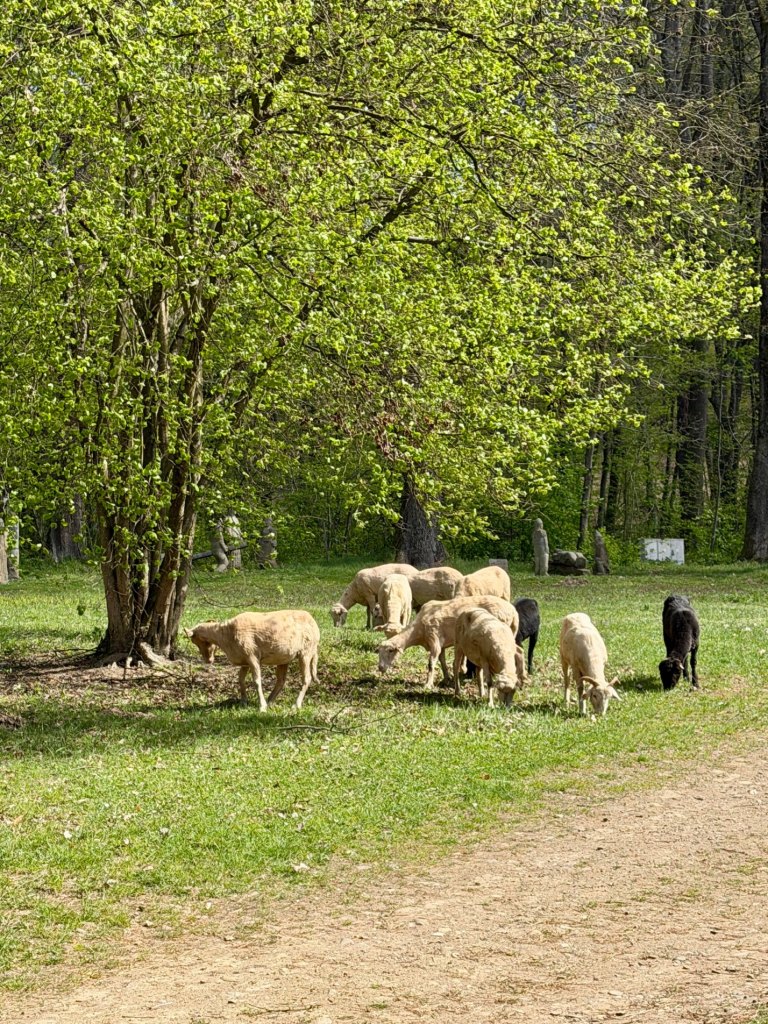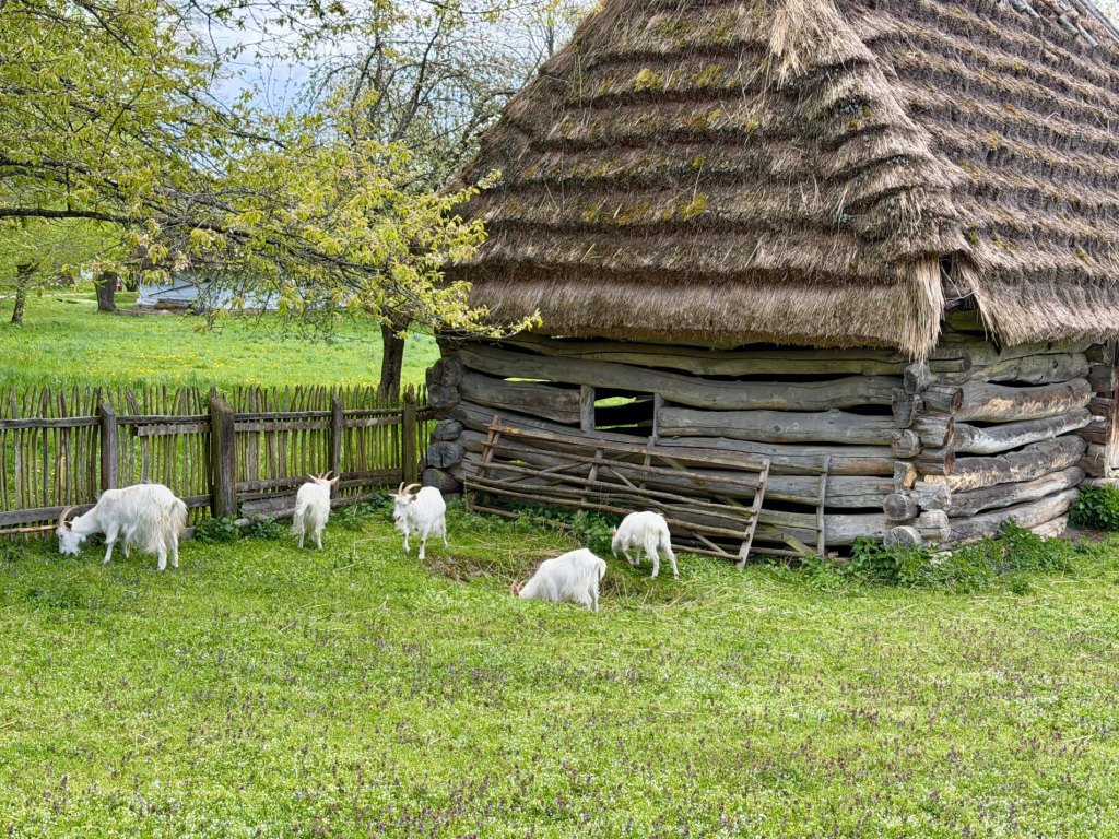 W sezonie działa kawiarnia i scena, więc pewnie wtedy to miejsce żyje jeszcze bardziej. Zaskakuje nas natomiast brak kur i kaczek, które kojarzymy z innych skansenów, jak Muzeum Wsi Lubelskiej, tutaj są za to gołębie i kozy w kilku miejscach.