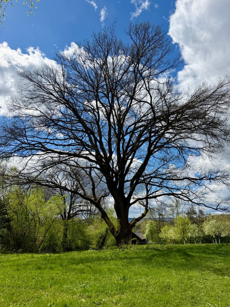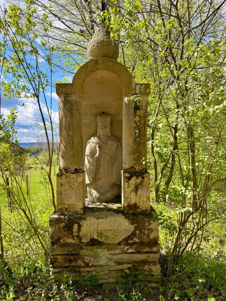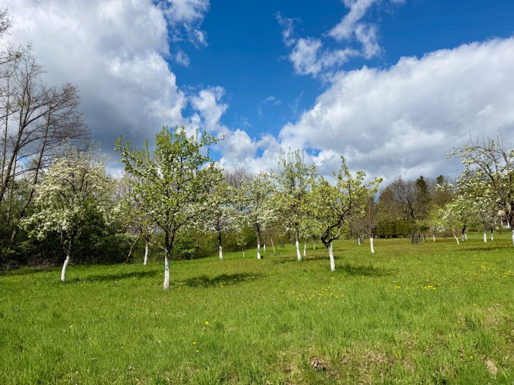 Wchodzimy w sektor Dolinian, gdzie wiatr znowu się nasila i niebo wygląda tak, jakby miało zaraz padać. Zabudowania są bielone, z dużymi trawnikami i jeszcze pustymi ogrodami. Jest aleja karłowatych wierzb, kapliczki i ule. Jesteśmy już wyraźnie zmęczeni, więc zaczynamy przyspieszać.
